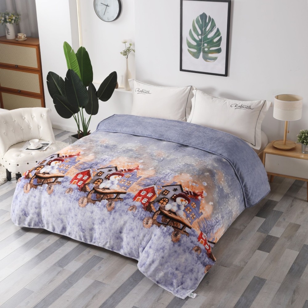 Patura pufoasa cocolino, 200x230cm, Craciun, Gri, Cenusiu, casute, oameni de zapada, CumparaMisim, cod produs: SKP104x