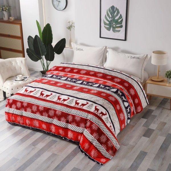 Patura pufoasa cocolino, 200x230cm, Craciun, Rosu, Alb, Gri, reni, fulgi de nea, CumparaMisim, cod produs: SKP105