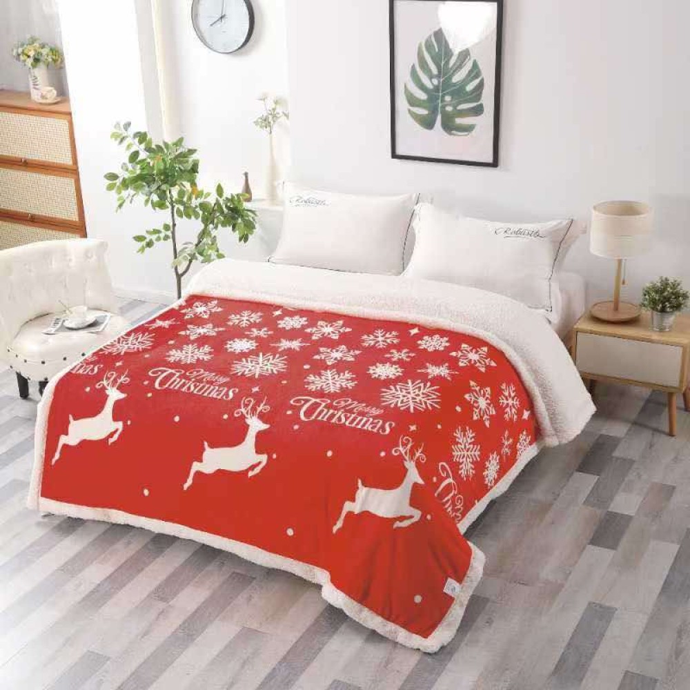 Patura pufoasa cocolino, cu BLANITA, 200x230cm, Craciun, Rosu, Alb, Merry Christmas, reni, fulgi de nea, CumparaMisim, cod produs: SKP12