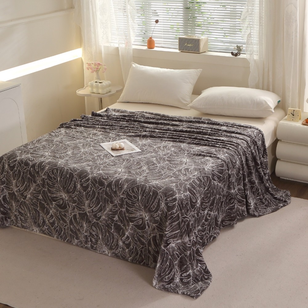 Patura Pufoasa CoCoLiNo (Fleece), 200x230cm, 240gr/m, Negru, Frunze - Răsfățul Perfect pentru Serile Racoroase, Super Design Pucioasa, cod produs: BCC-PT34