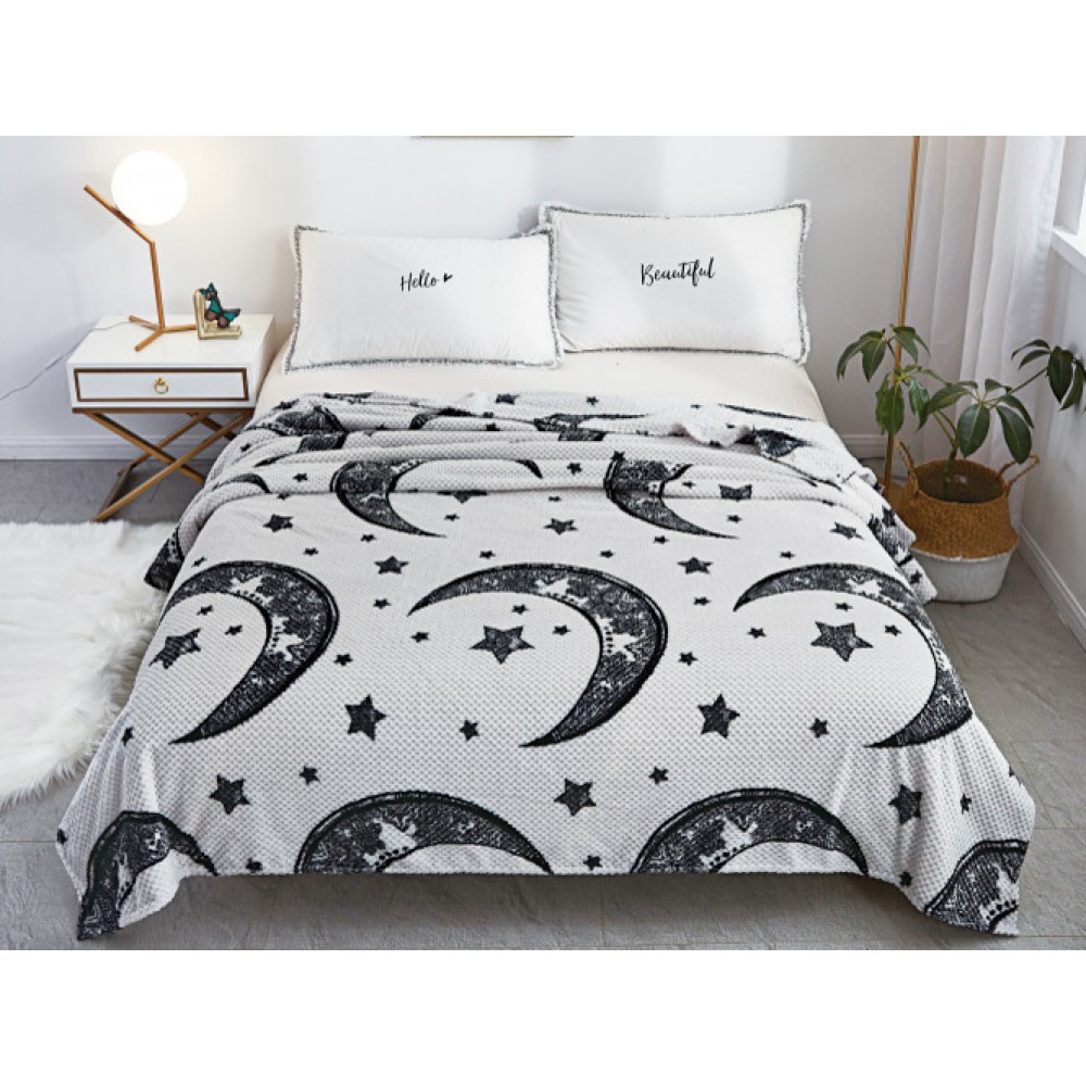 Patura pufoasa cocolino gofrata 200x230cm, 300gr, Gri-Negru, Stelute, Super Design Pucioasa, cod produs: CVA20
