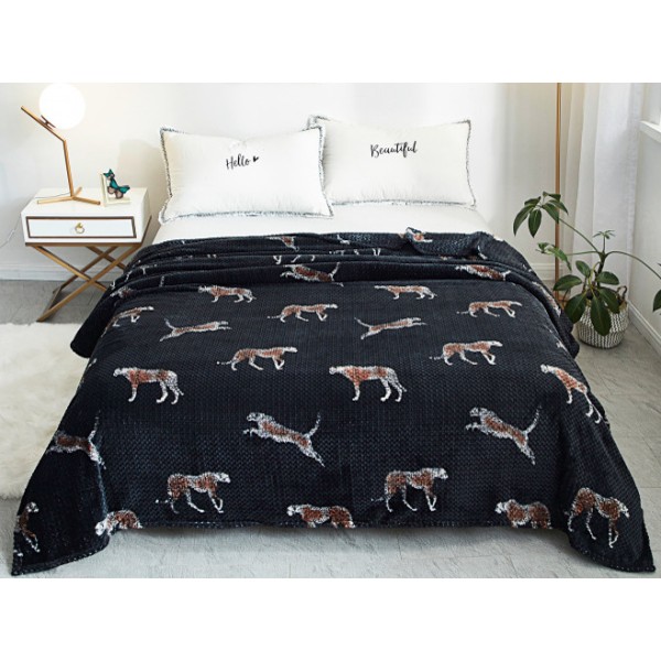 Patura pufoasa cocolino gofrata 200x230cm, 300gr/mp, Negru-Maro, Leoparzi, Super Design Pucioasa, cod produs: CVA81