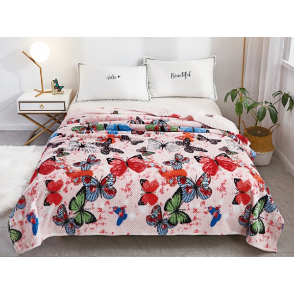 Patura pufoasa cocolino gofrata 200x230cm, 300gr/mp, Roz-Multicolor, Fluturi, Super Design Pucioasa, cod produs: CVA86