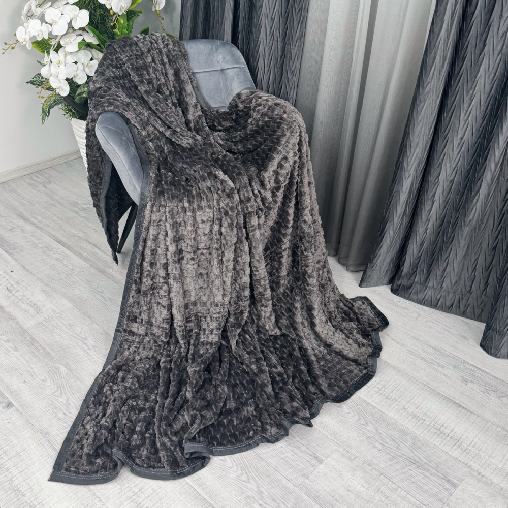 Patura pufoasa cocolino gofrata 200x230cm, 350gr, Gri Antracit, Super Design Pucioasa, cod produs: SKP506