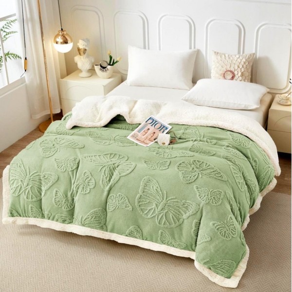 Pătură Super Soft Cocolino cu Blăniță, 200x230 cm – Eleganță și Căldură cu Model 3D în Relief, Fluturi Delicați, Verde, cod produs: SPR-Pf-04