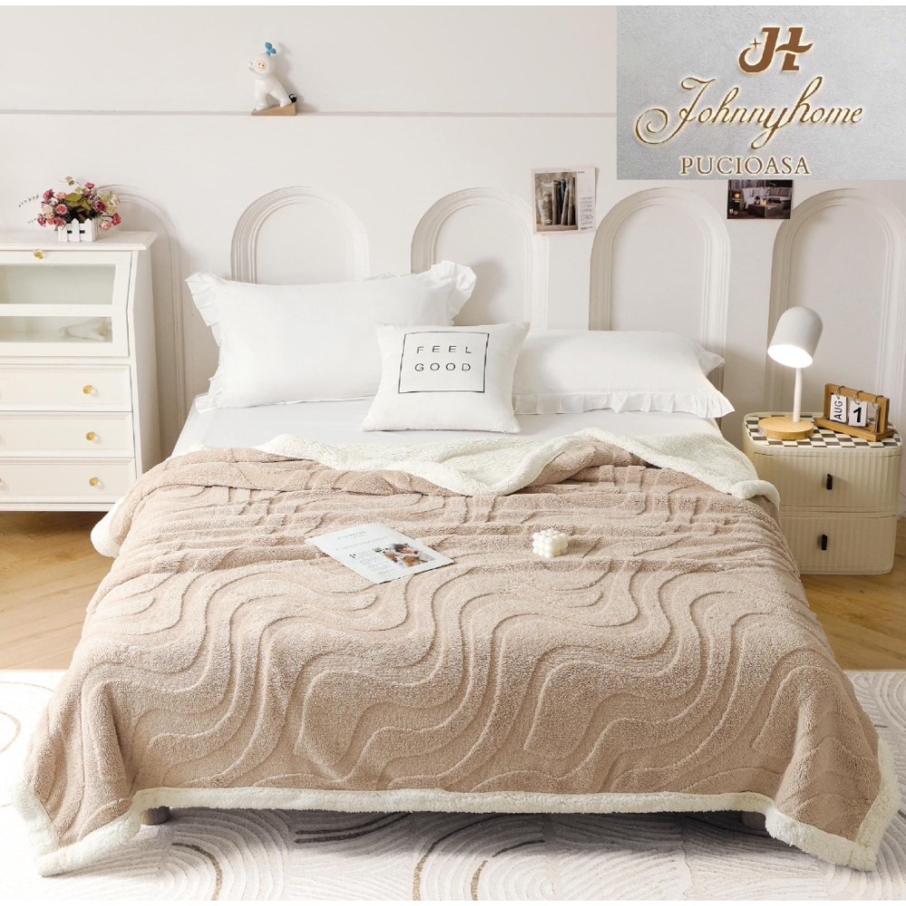 Pătură Super Soft Cocolino cu Blăniță, 200x230 cm – Eleganță și Căldură cu Model 3D în Relief, Valuri Elegante, Bej, cod produs: SPR-Pd-01