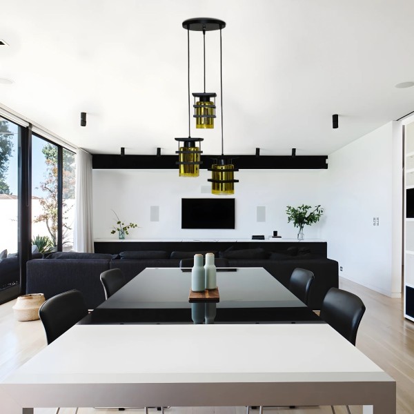 Pendul RFAN, Model 3175-3, Cu Abajur, 3 X E27, Inaltime Reglabila, Negru, cod produs: RFN-3175-3