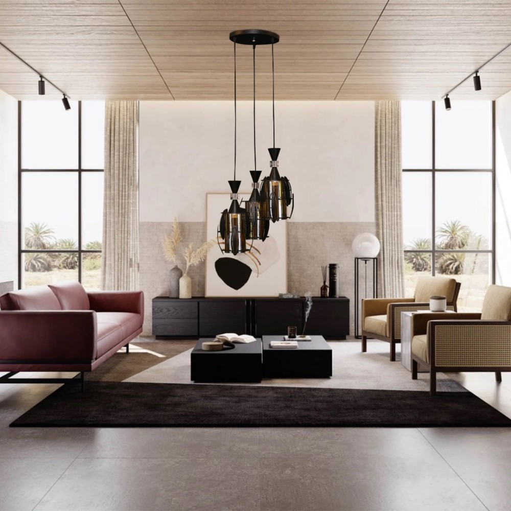 Pendul RFAN, Model 3997-3, Cu Abajur, 3 X E27, Inaltime Reglabila, Negru, cod produs: RFN-3997-3
