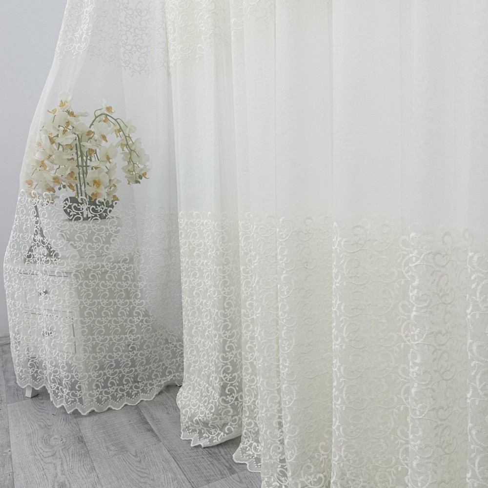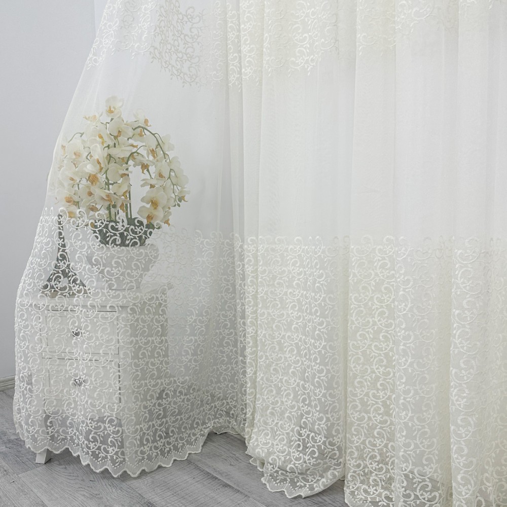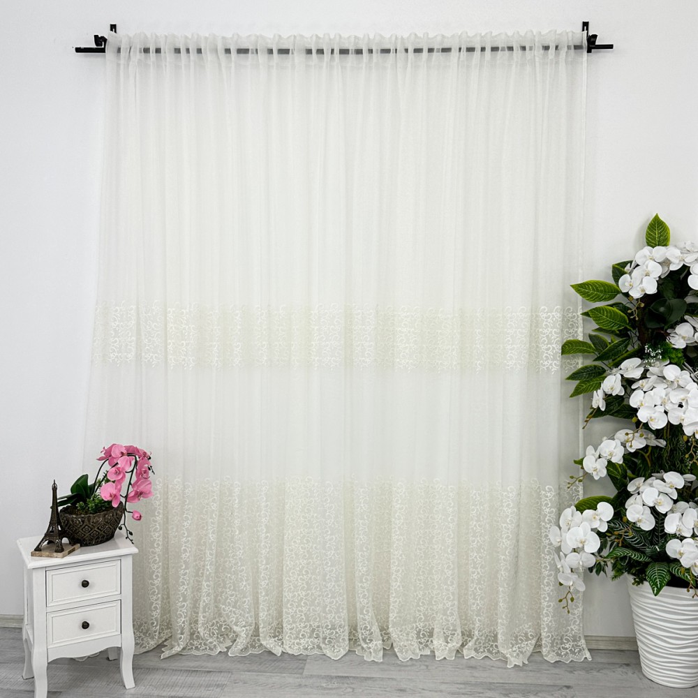 Perdea Alice din Tulle cu Broderie, Ivoire, 3m latime x 200cm inaltime, cu rejansa pentru bara, CumparaMisim, cod produs: BPDs59b