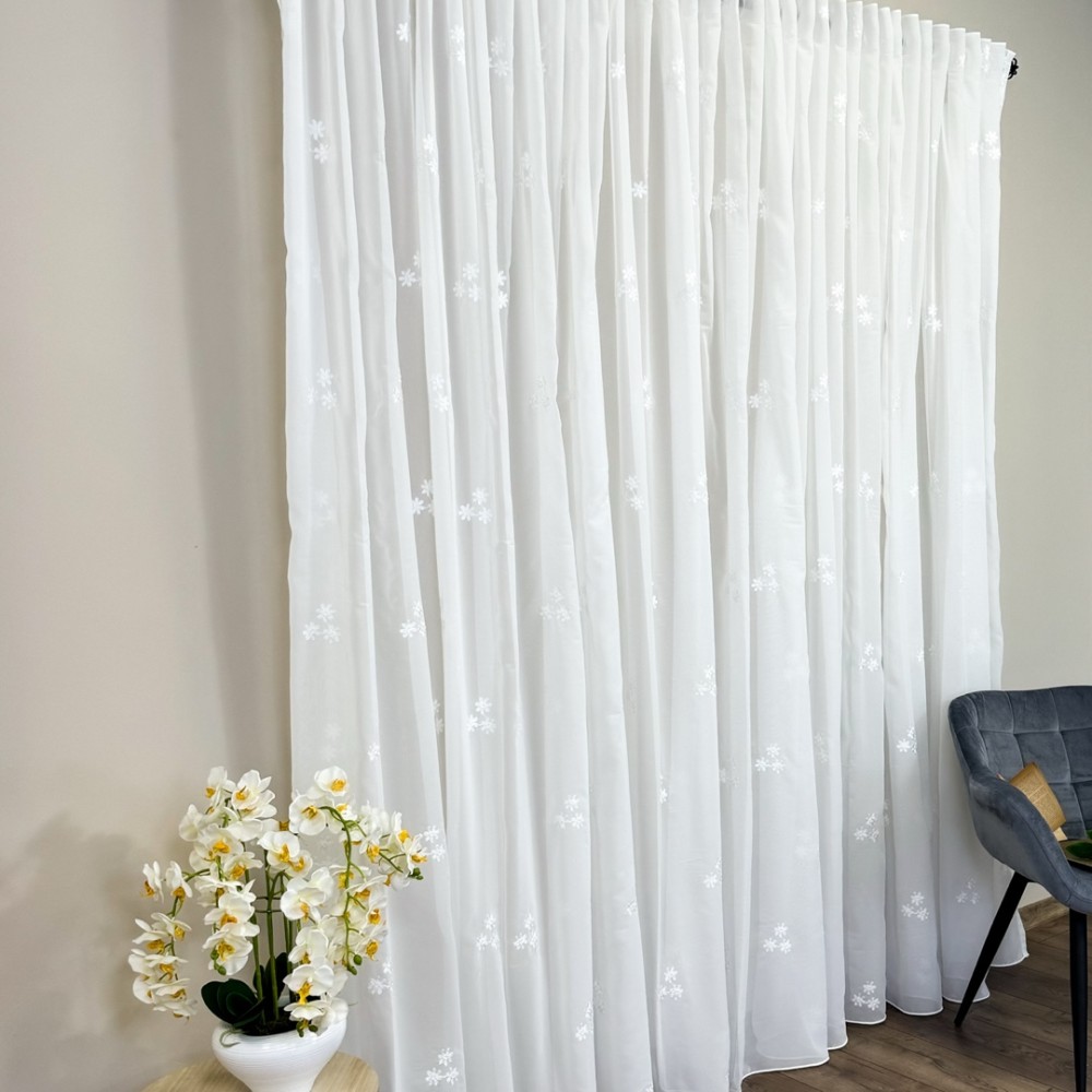 Perdea Anabelle din Voal Brodat - 600cm x 240cm, Rejansa pt. bara , model cu flori, Alb, CumparaMisim, cod produs: BPDs304A