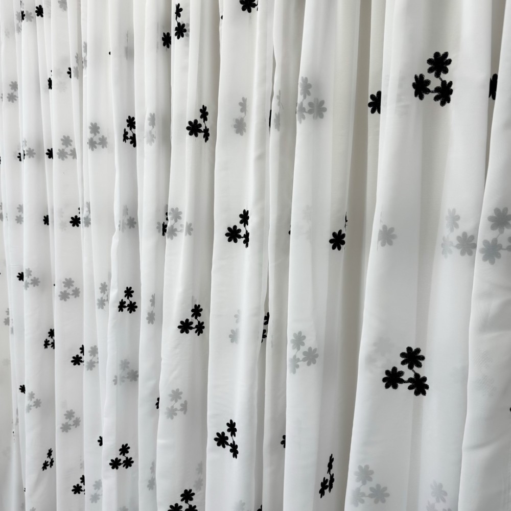 Perdea Anabelle din Voal Brodat - 600cm x 245cm ,Rejansa pt. bara , model cu flori negre, Alb, CumparaMisim, cod produs: BPDs303A