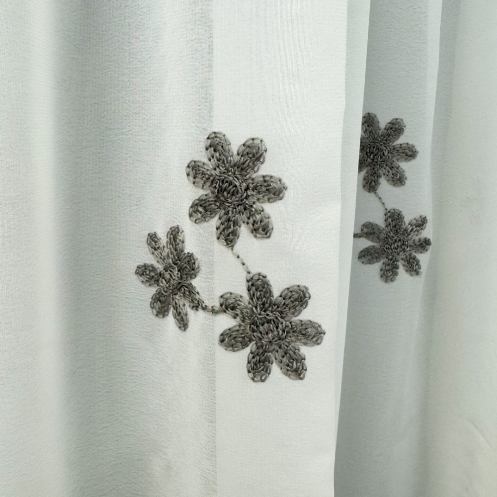 Perdea Anabelle din Voal Brodat - 600cm x 245cm , Rejansa pt. sina , model cu flori gri, Alb, CumparaMisim, cod produs: BPDs306A