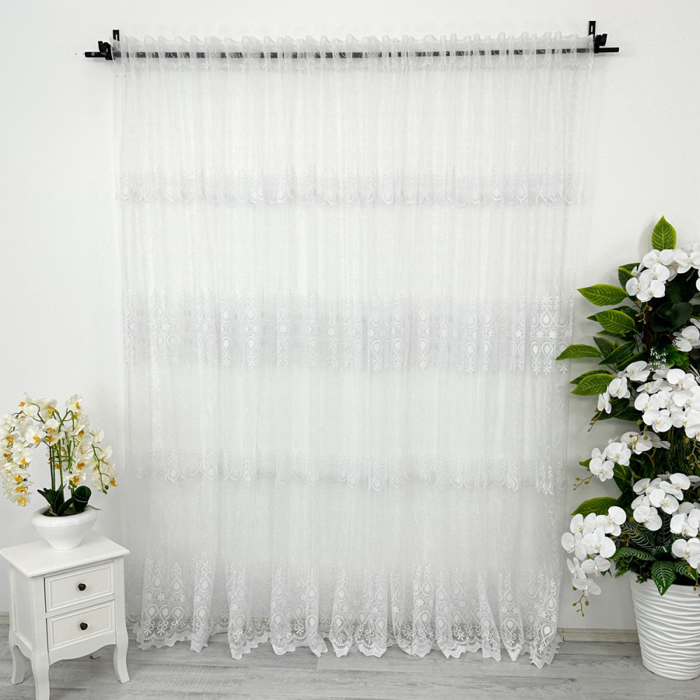 Perdea Anatoli din Tulle cu Broderie - 500 x 232cm, rejansa pt. bara Alb, CumparaMisim, cod produs: BPDs38A