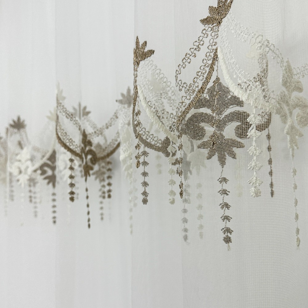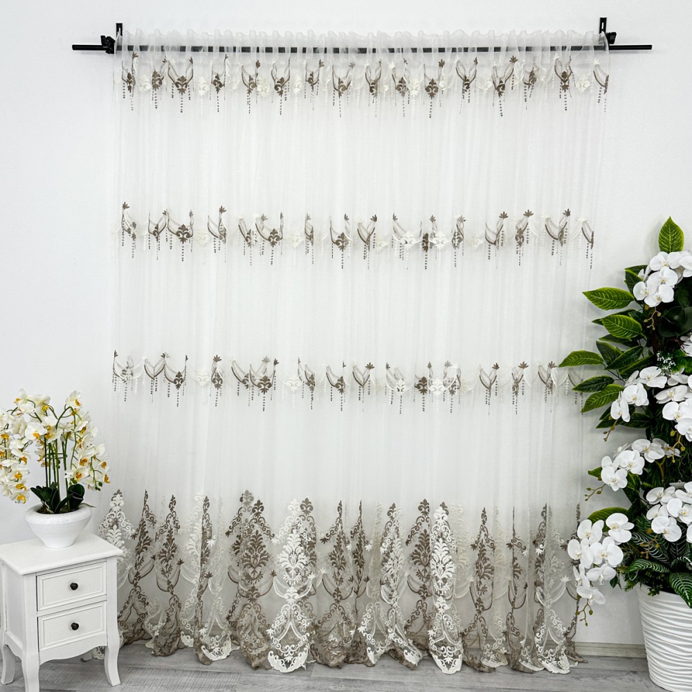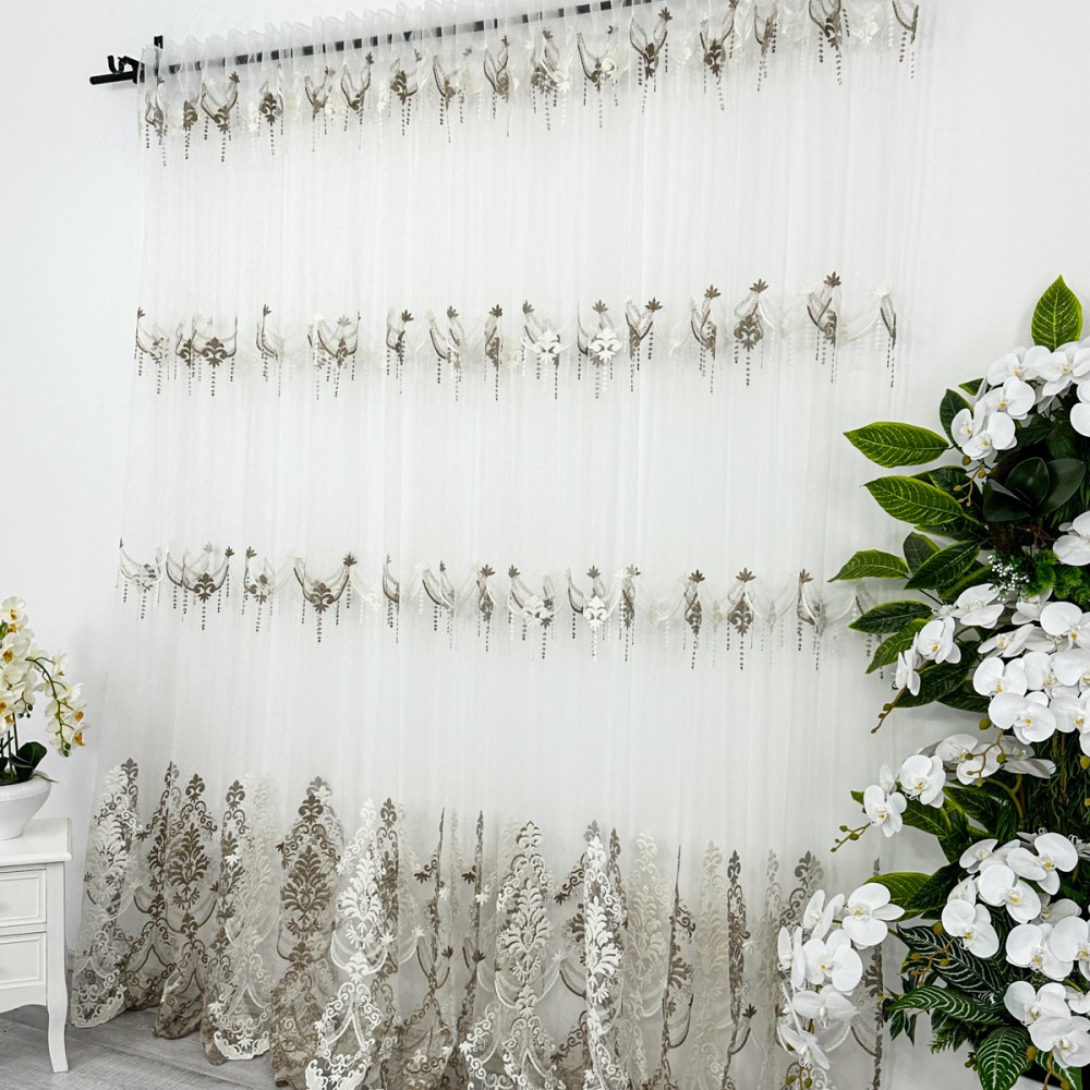 Perdea Aurora din Tulle cu Broderie - 5m latime x 232cm inaltime x Rejansa pt bara, model elegant, Alb - Bej nisipiu, CumparaMisim, cod produs: BPDs27a