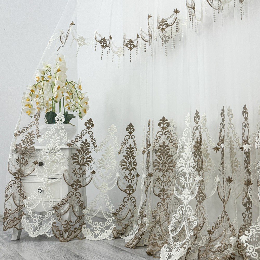 Perdelele din tulle brodat, se integrează cu ușurință în diferite stiluri de design interior, de la clasic la modern. Ele adaugă o notă de subtilitate și eleganță, accentuând frumusețea ferestrelor și creând un fundal rafinat pentru orice decor.
