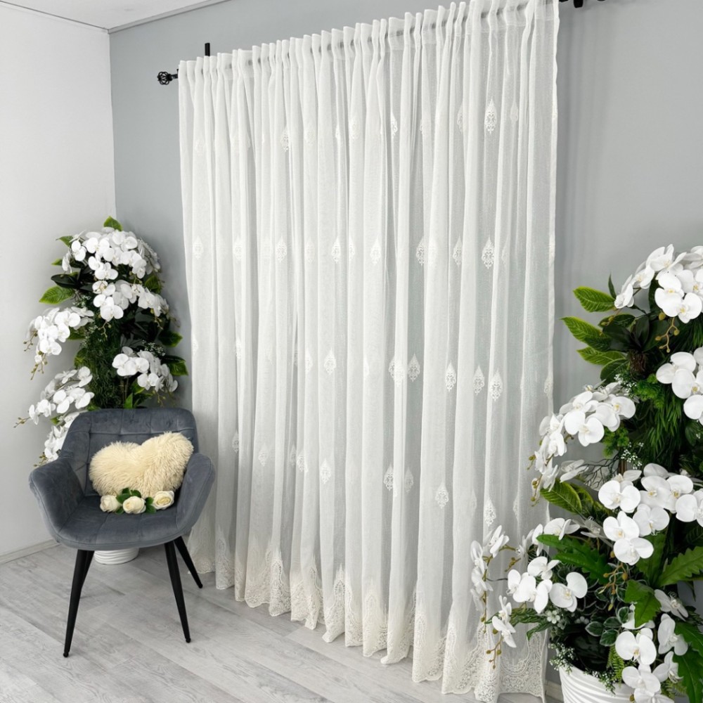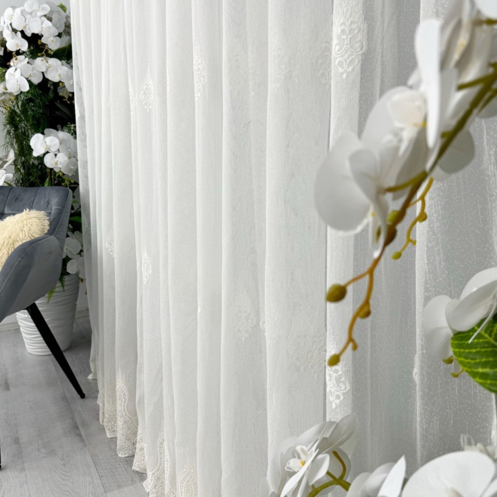 Inul este un material nobil, cunoscut pentru strălucirea și finisajul său elegant si aerat. Perdelele noastre din brodat, adaugă un aer luxos și sofisticat oricărei încăperi, îmbogățind instantaneu atmosfera spațiului. Fie că este vorba despre o cameră de zi, un dormitor sau chiar un spațiu de lucru, aceste perdele simple aduc o notă subtilă de eleganță și rafinament.