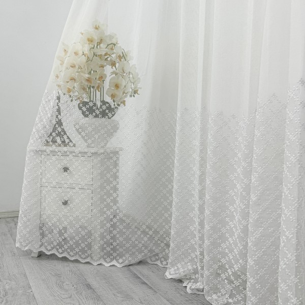 Perdea Cicek din Tulle cu Broderie - 200cm latime x 150cm inaltime , rejansa pt. sina, Alb, CumparaMisim, cod produs: BPDs87A