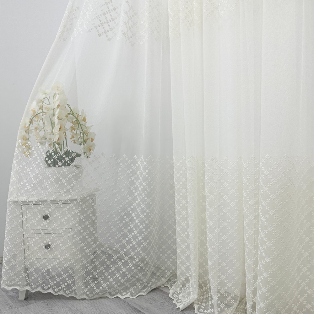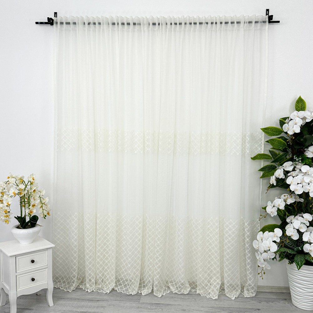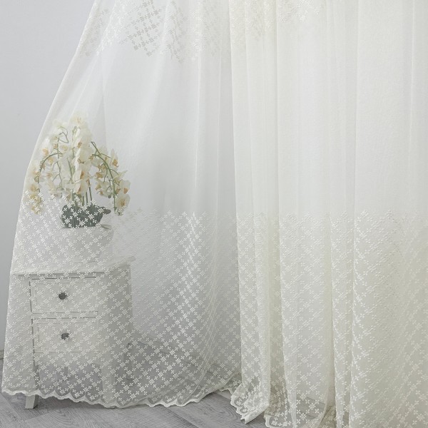 Perdea Cicek din Tulle cu Broderie - Ivoire, 5m latime x 232cm inaltime x rejansa pentru bara, CumparaMisim, cod produs: BPDs39a