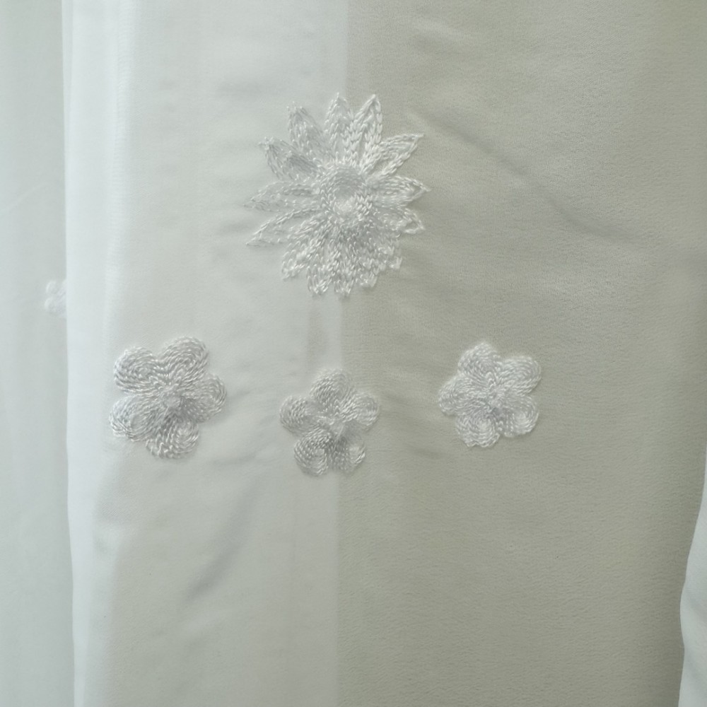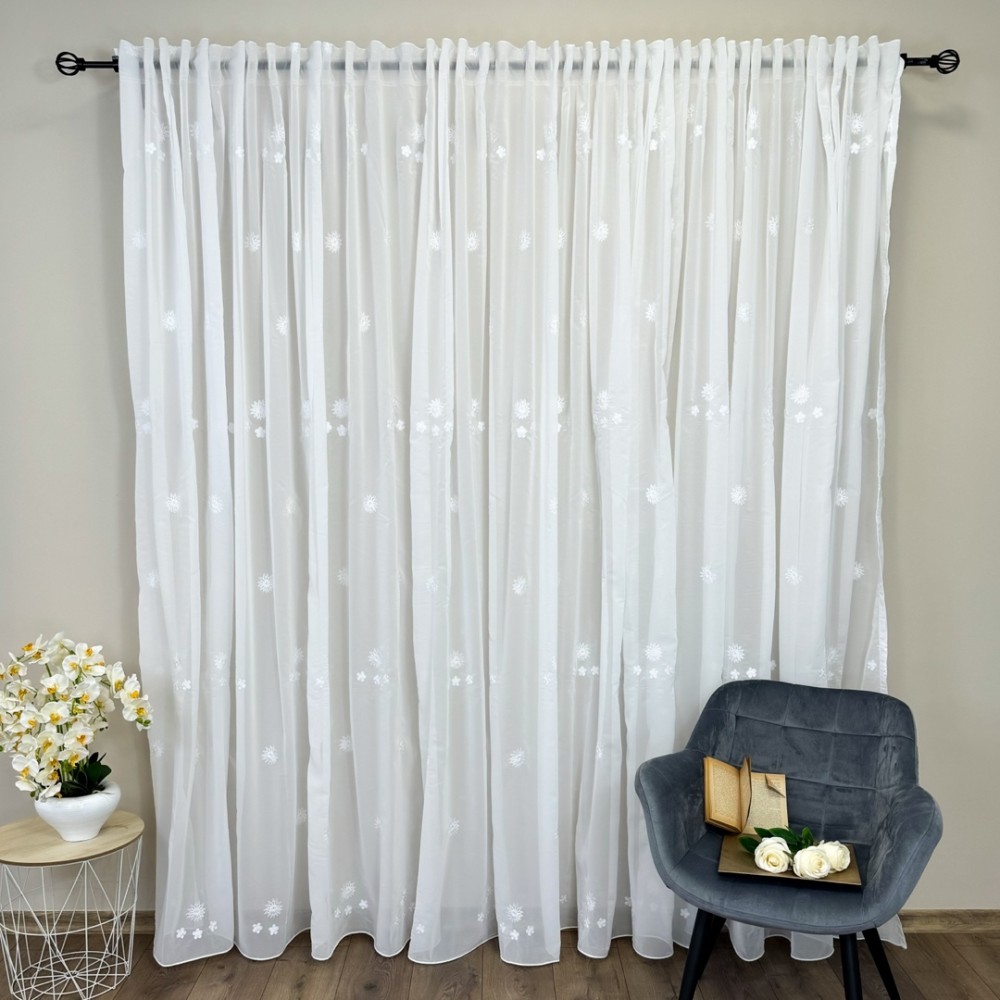 Perdea Crina din Voal Brodat - 100cm x 80Cm ,Tiv lat , model cu flori, Ivoire, CumparaMisim, cod produs: BPDs313C
