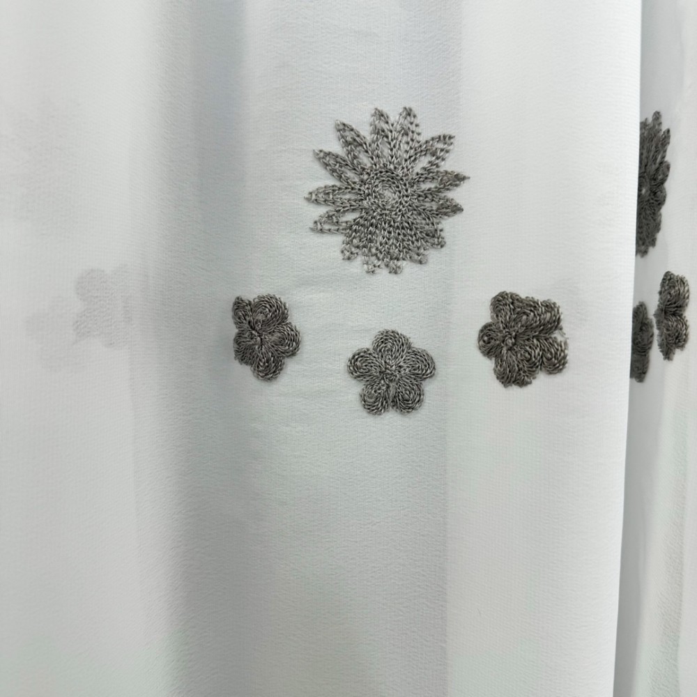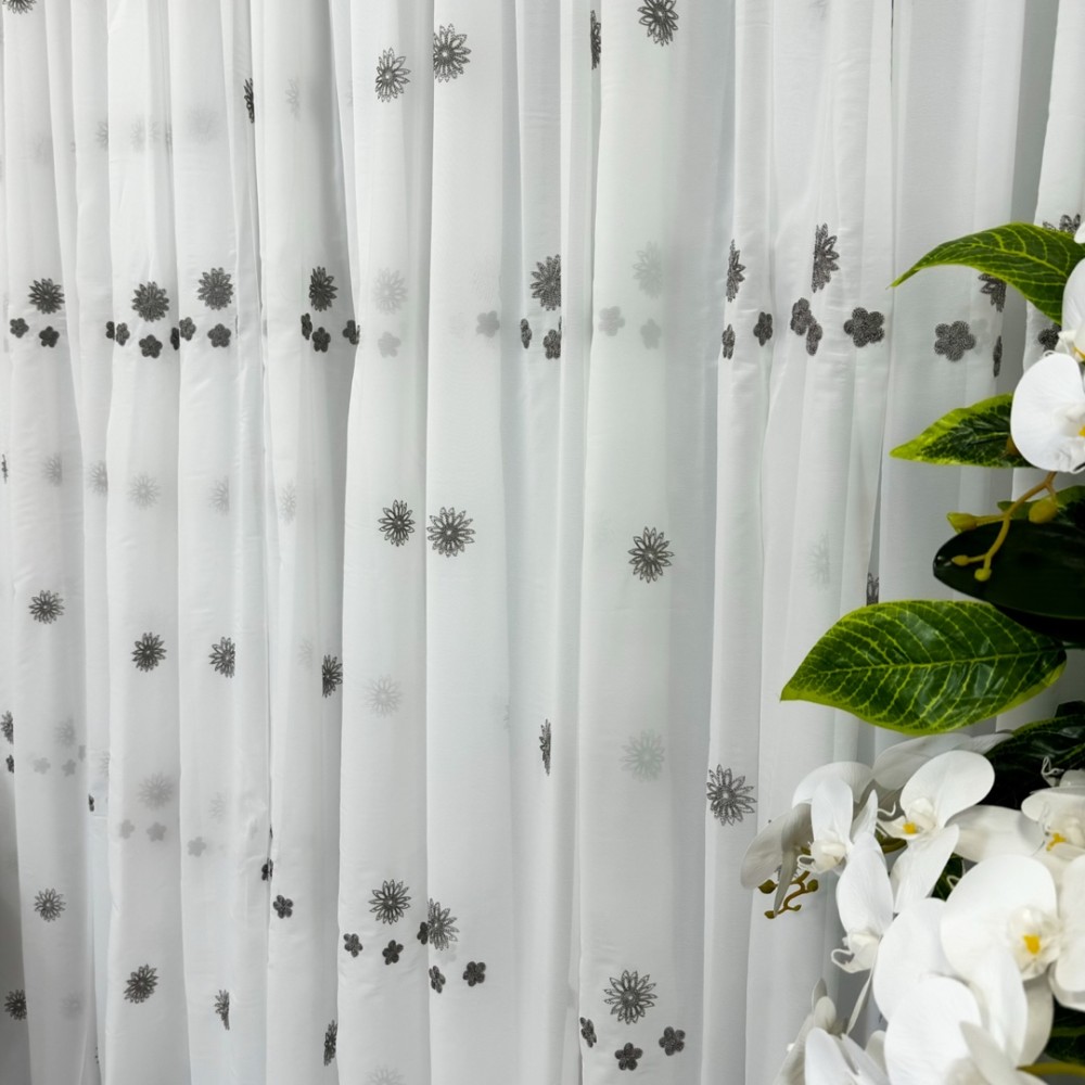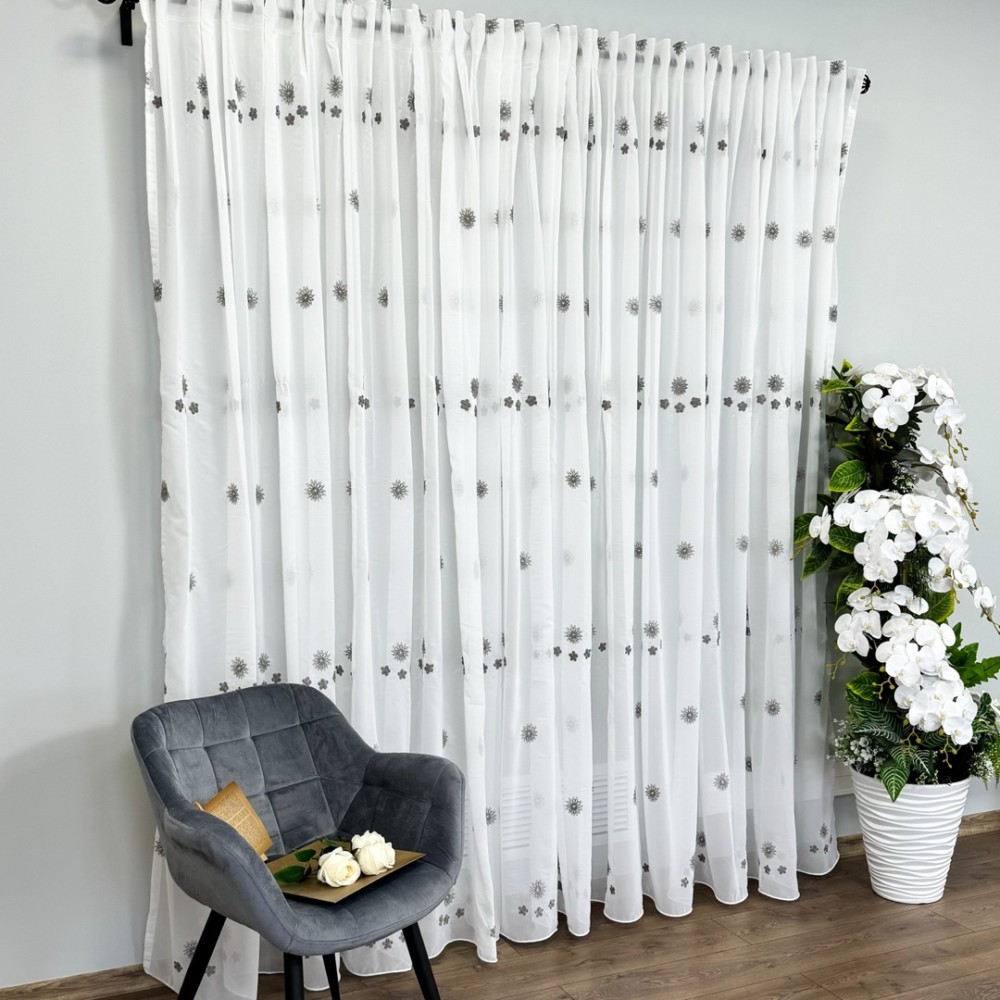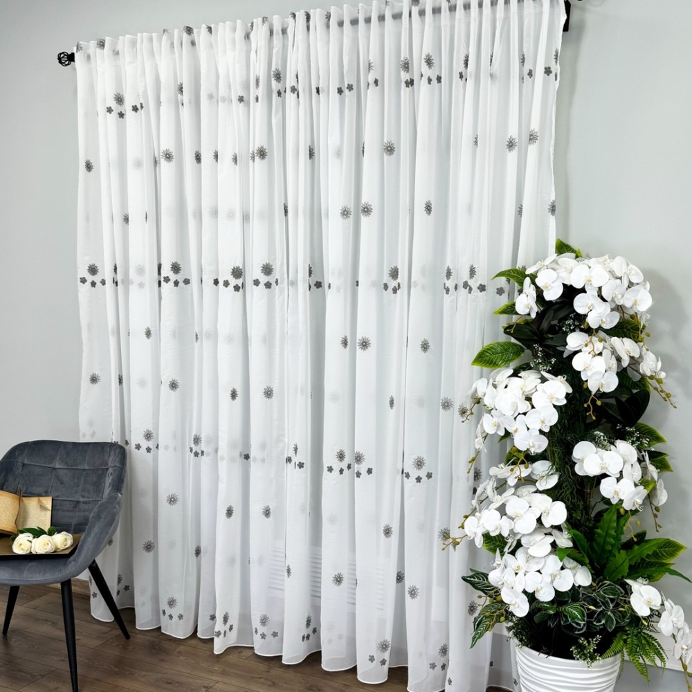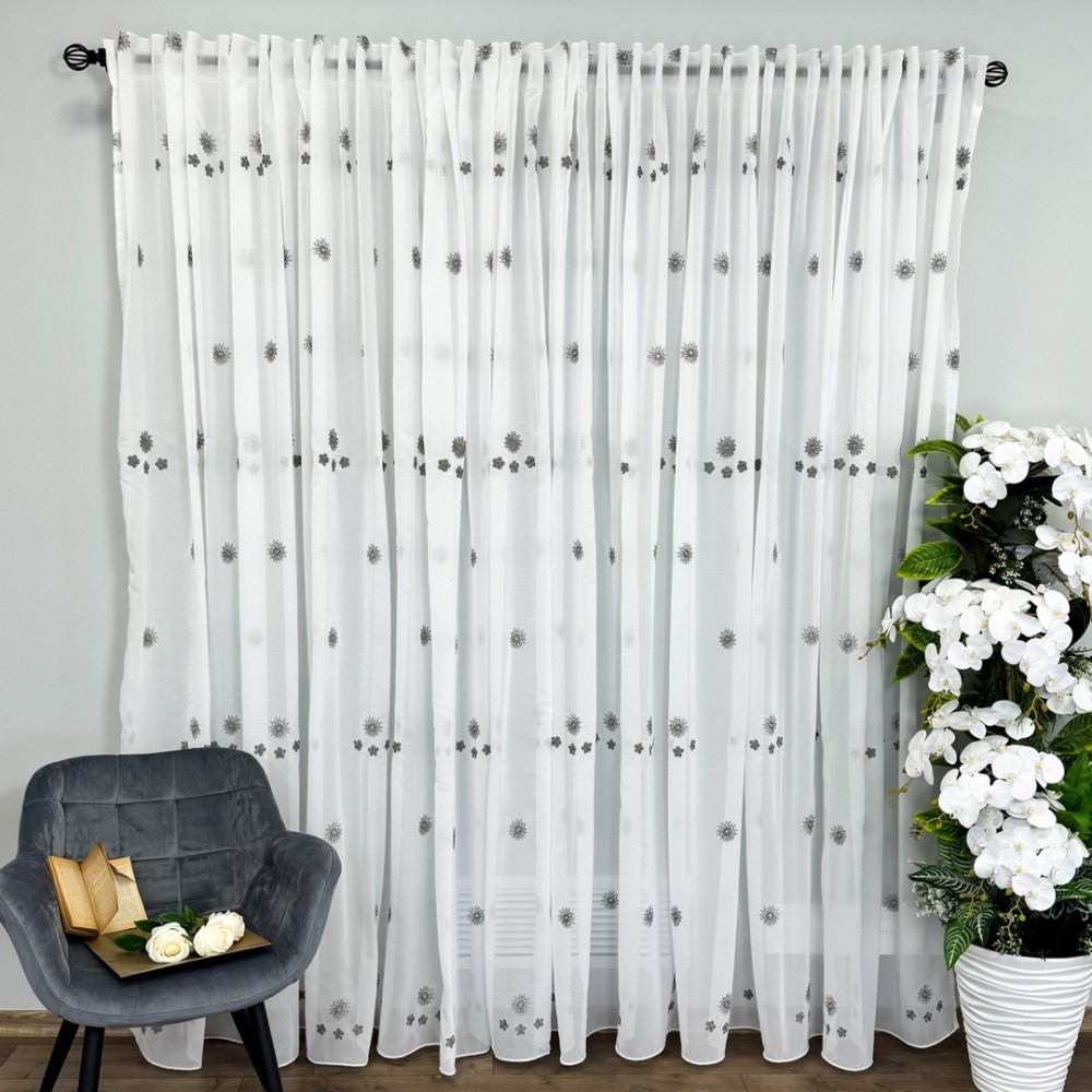 Perdea Crina din Voal Brodat - 600cm x 245cm , Rejansa pt. bara , model cu flori gri, Alb, CumparaMisim, cod produs: BPDs310A