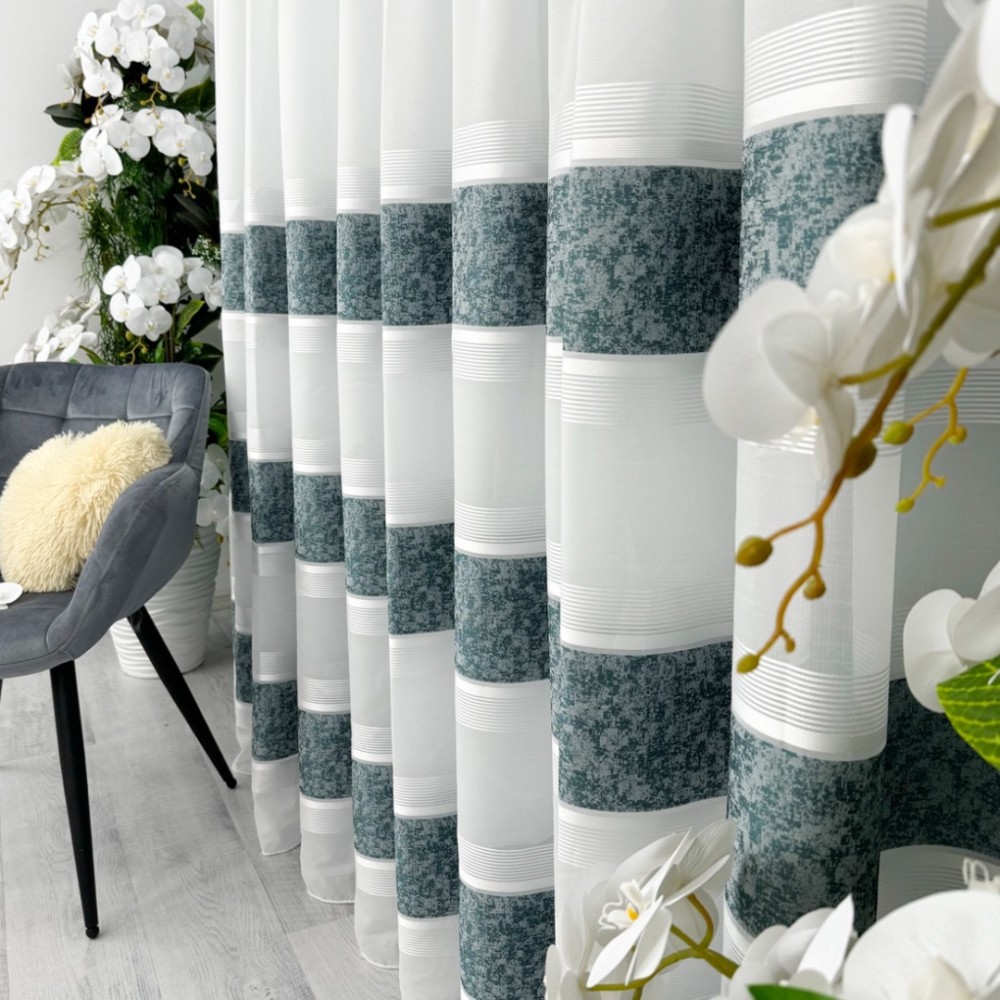 Perdea Cristal din IN plin - 5m latime x 232cm inaltime x rejansa pentru bara , Alb-Turquoise, model gheata, CumparaMisim, cod produs: BPDs98a