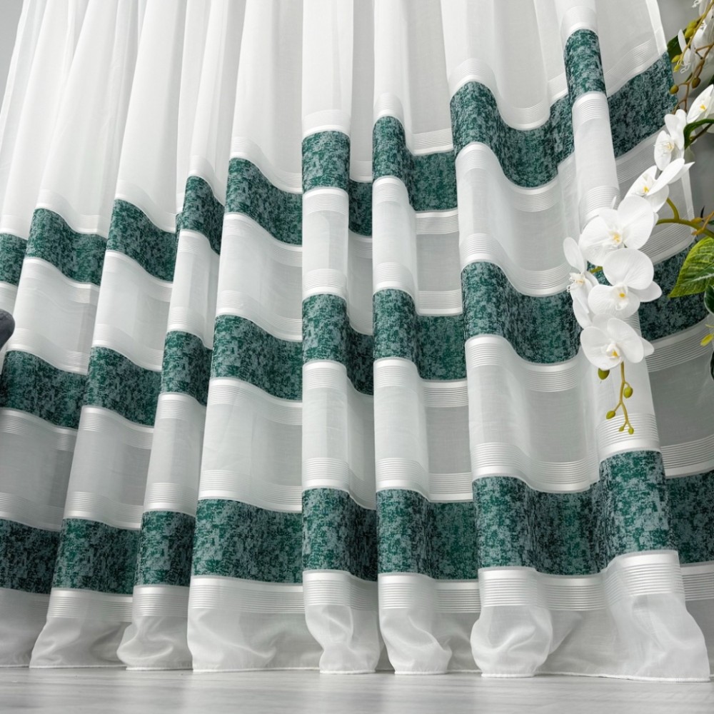Perdea Cristal din IN plin - 5m latime x 232cm inaltime x rejansa pentru bara, Alb-Verde, model gheata, CumparaMisim, cod produs: BPDs100a