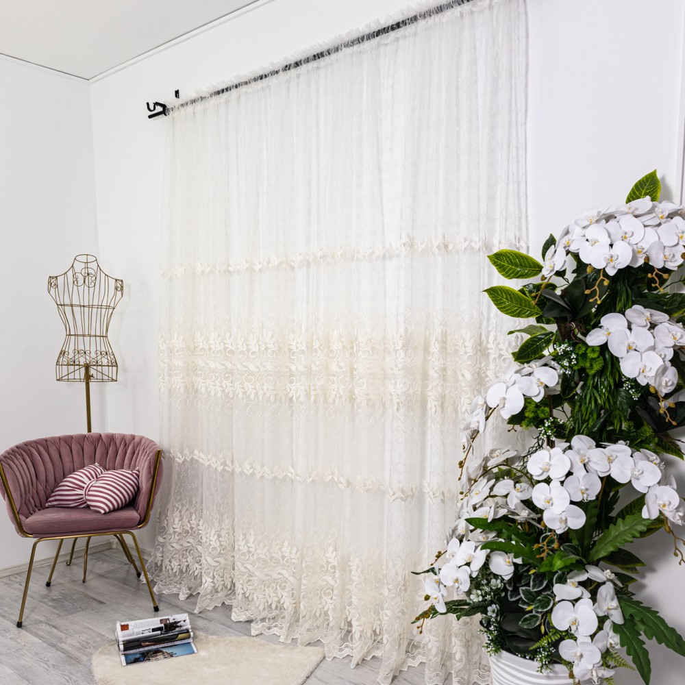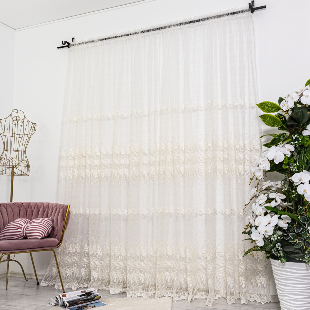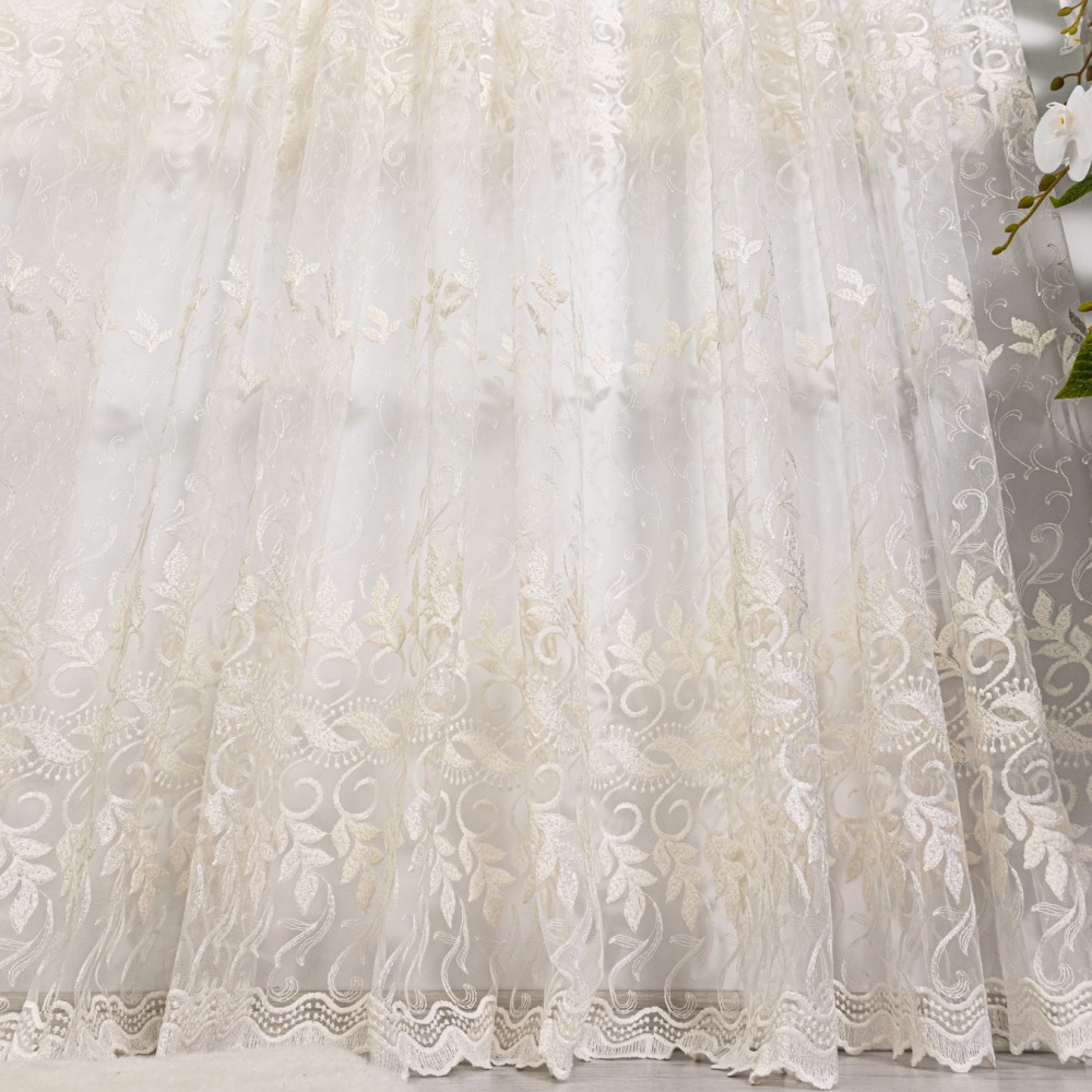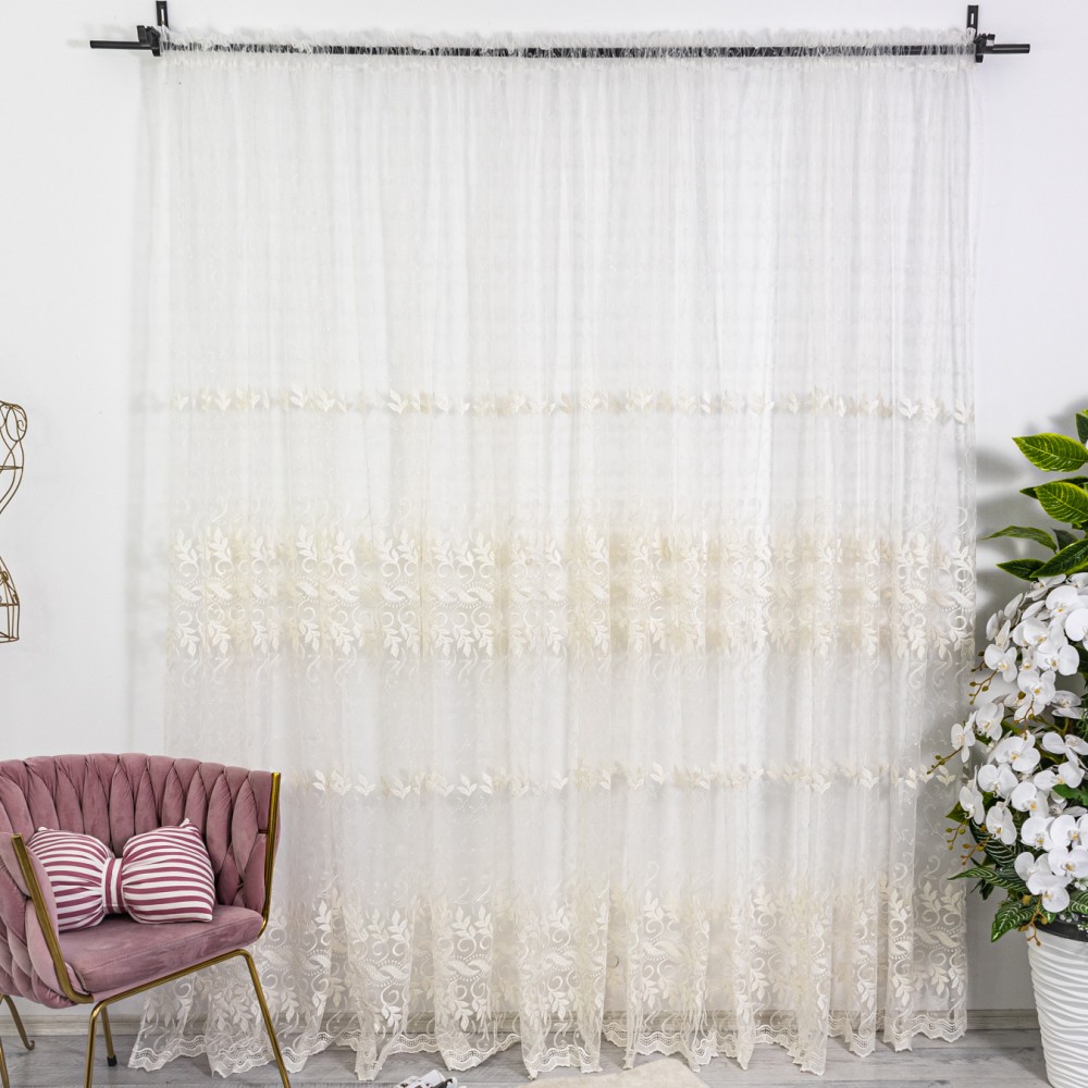 Perdea cu broderie tip frunzulite - 600cm x 232cm , tiv lat , Ivoire, CumparaMisim, cod produs: APDs18A