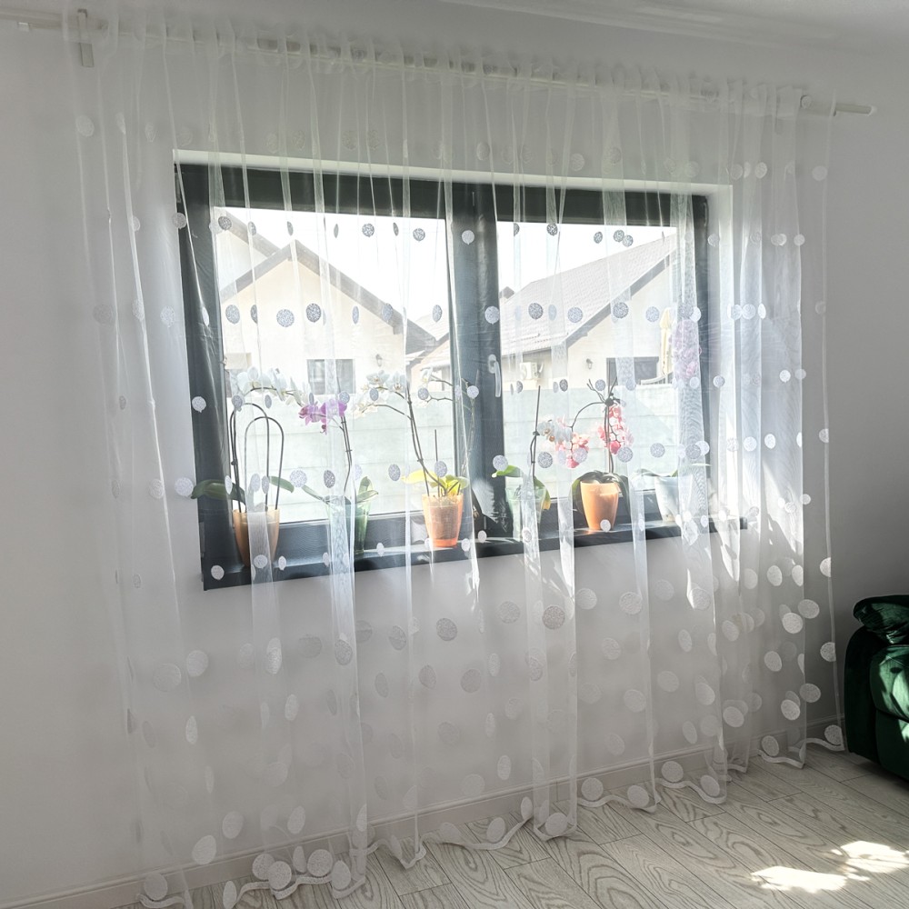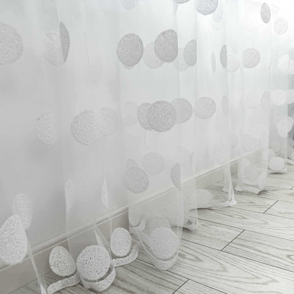 Perdea cu buline brodate - 5m latime x 2.4m inaltime, cu rejansa pentru bara, Alb, CumparaMisim, cod produs: APDs8A