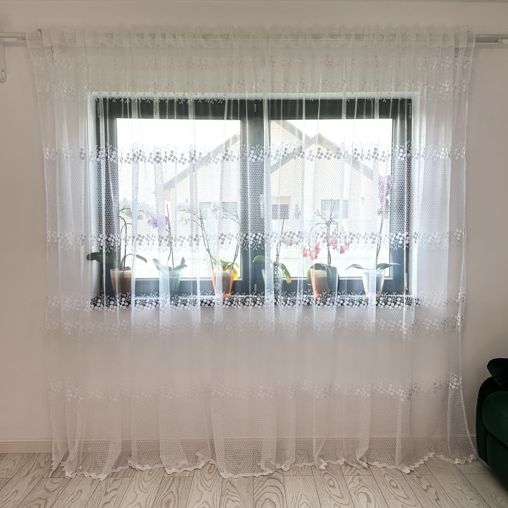 Perdea cu flori brodate - 300cm x 260cm , Rejansa pentru sina, Alb, CumparaMisim, cod produs: APDs6B