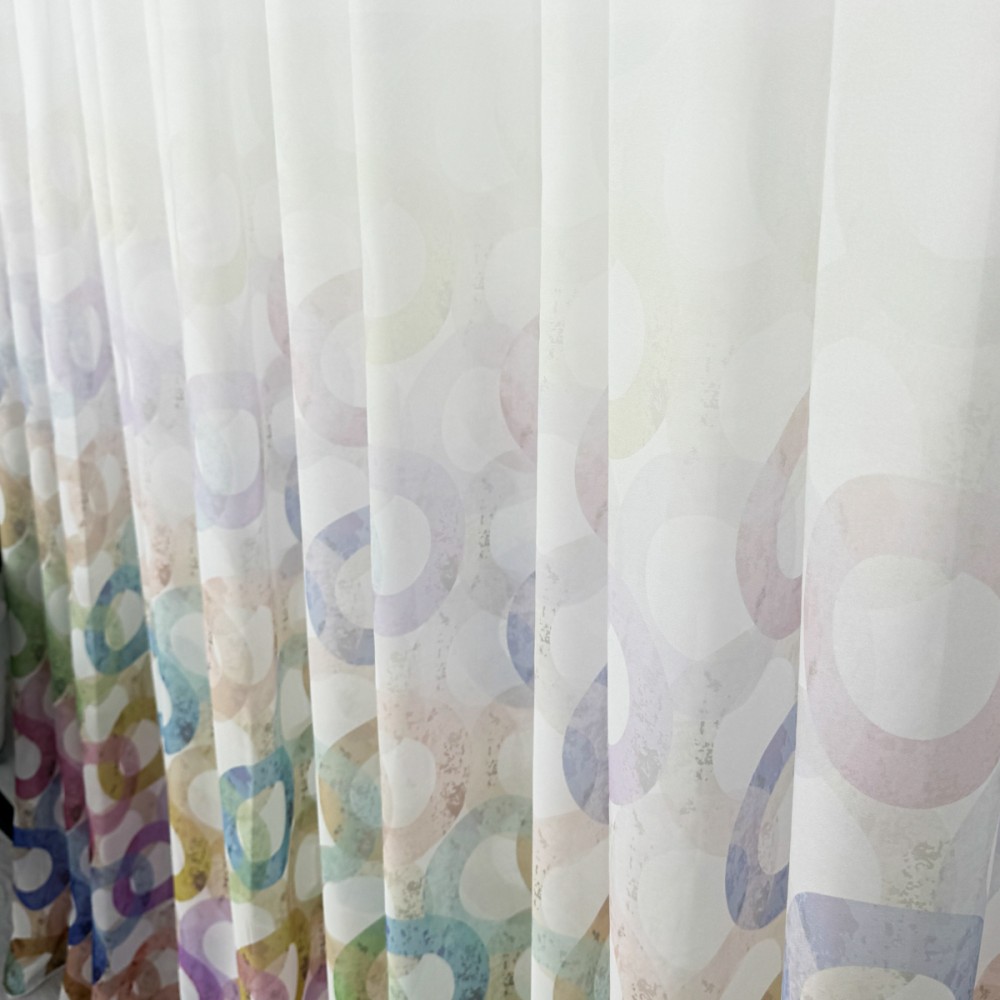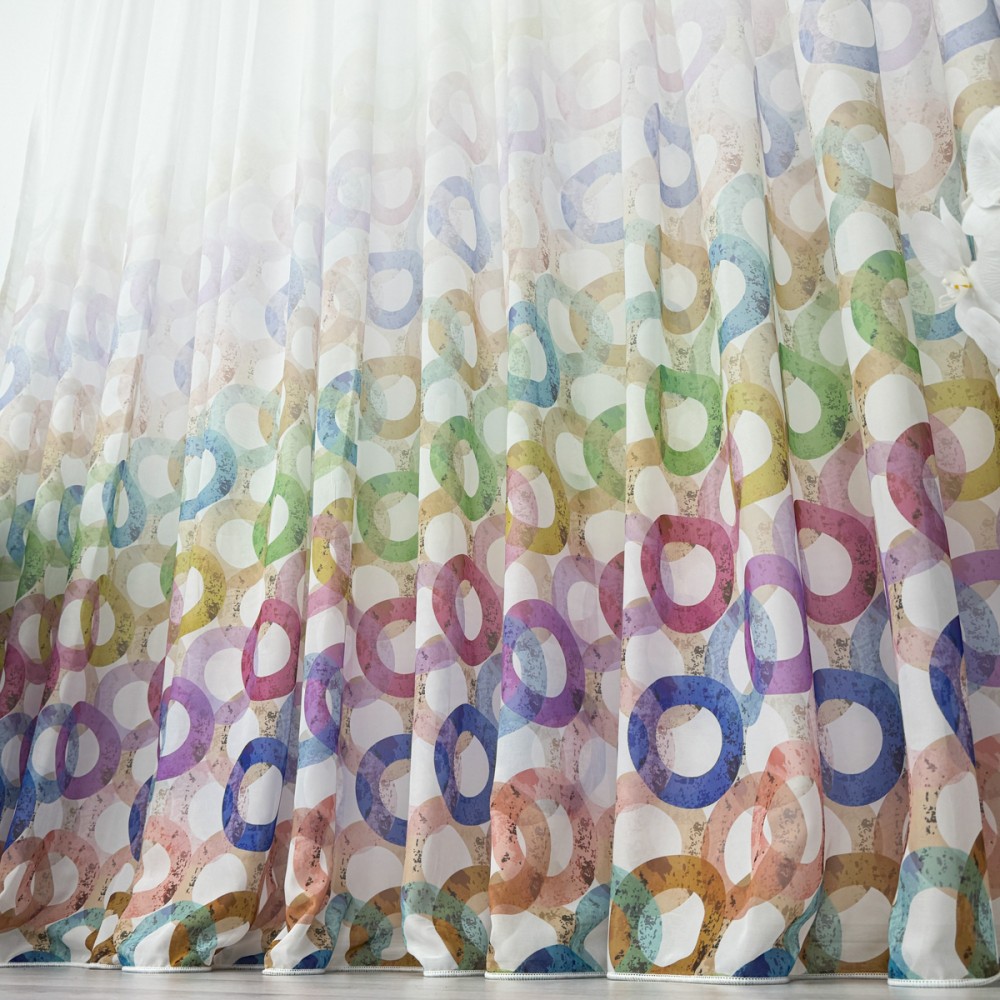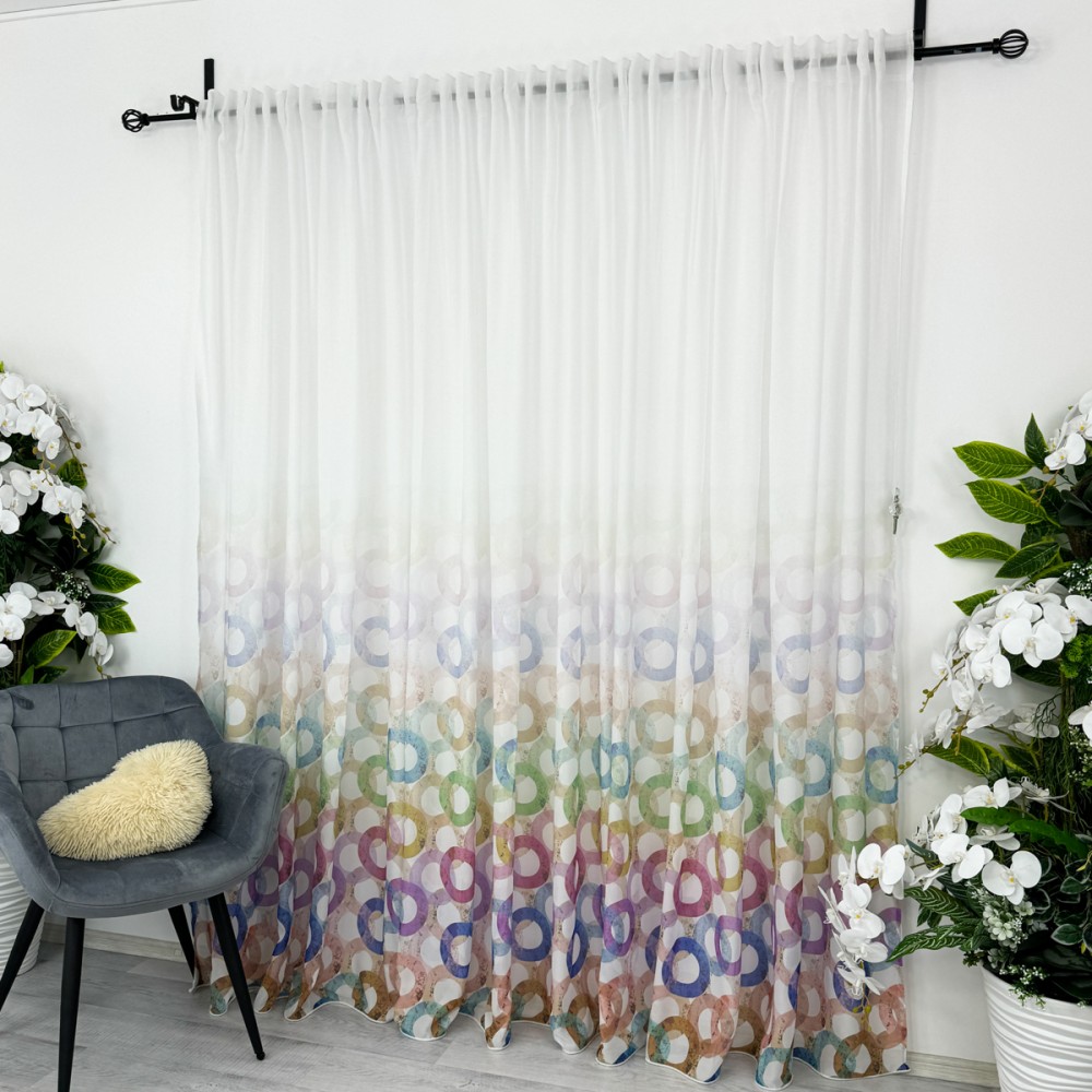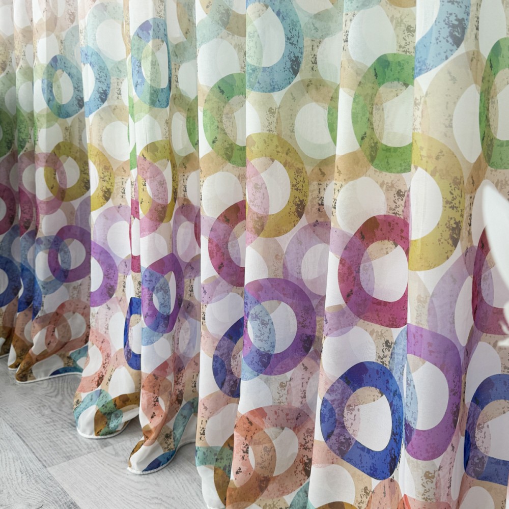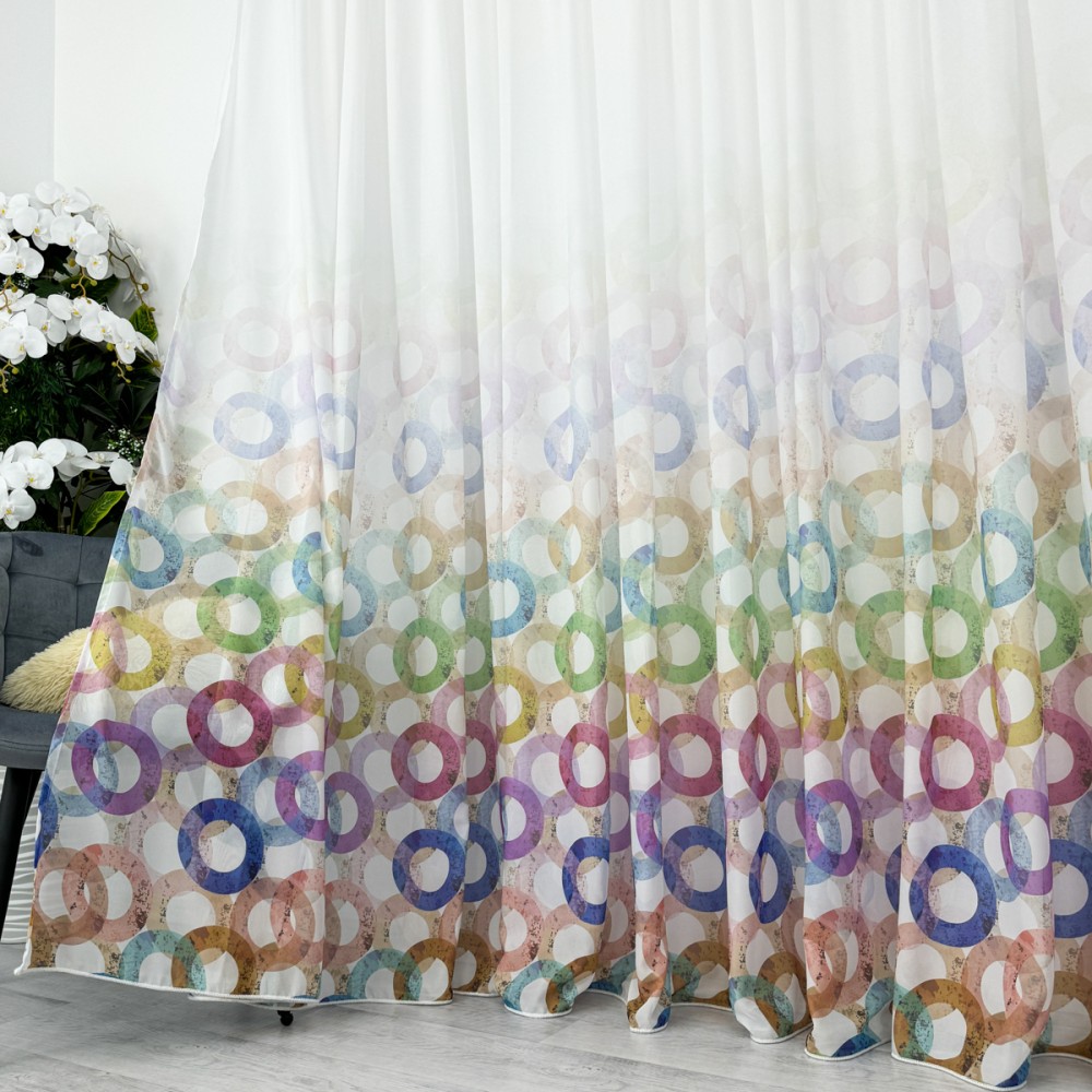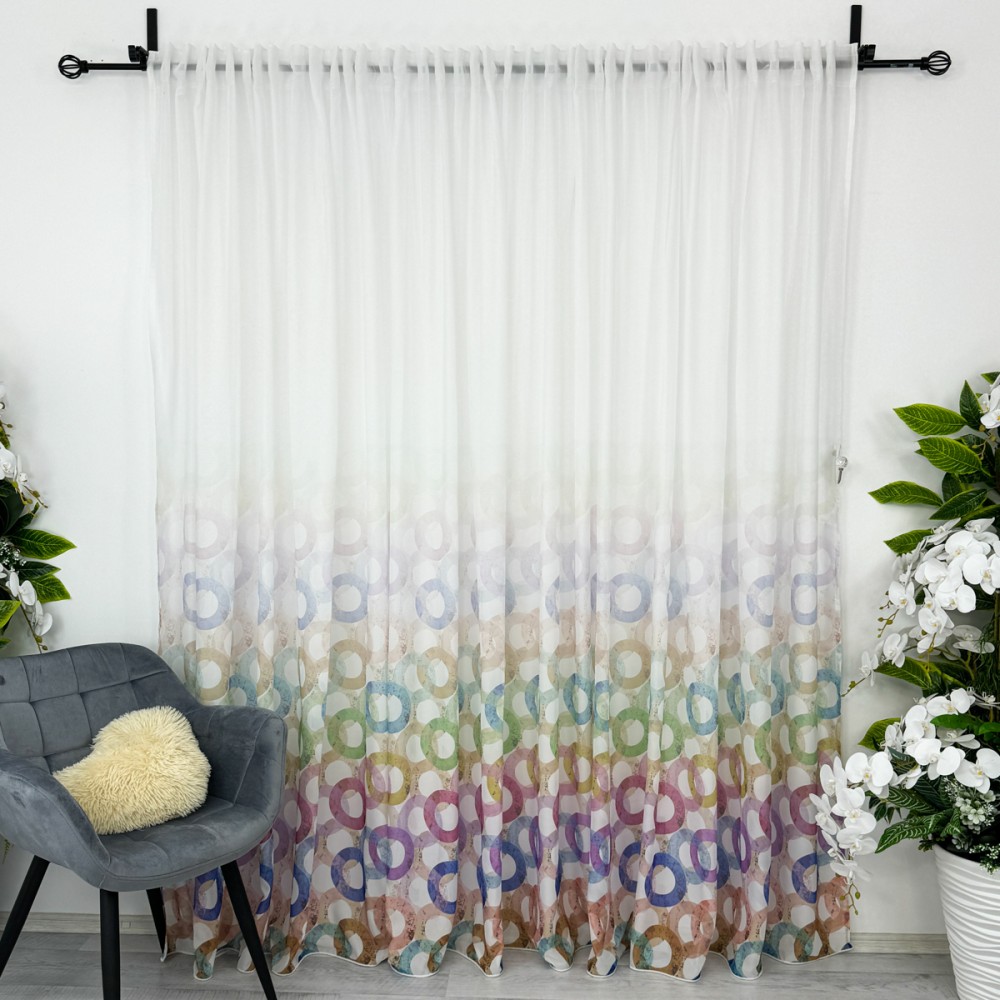 Perdea din Voal imprimat -500cm x 232cm , rejansa pt. bara , Alb cu cercuri colorate, CumparaMisim, cod produs: CSR-PDs7A