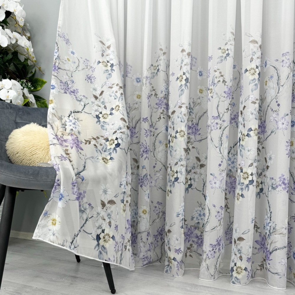 Perdea din Voal imprimat, Gri, flori, 5m latime x 232cm inaltime x rejansa pentru bara, CumparaMisim, cod produs: CSR-PDs18a