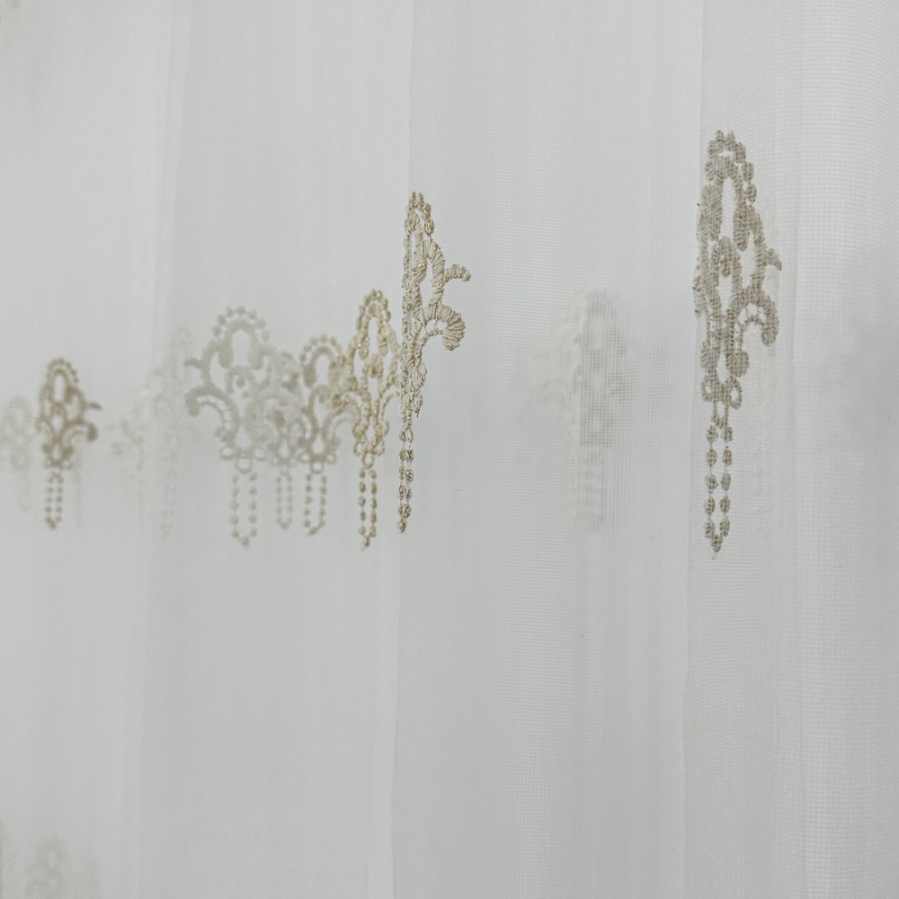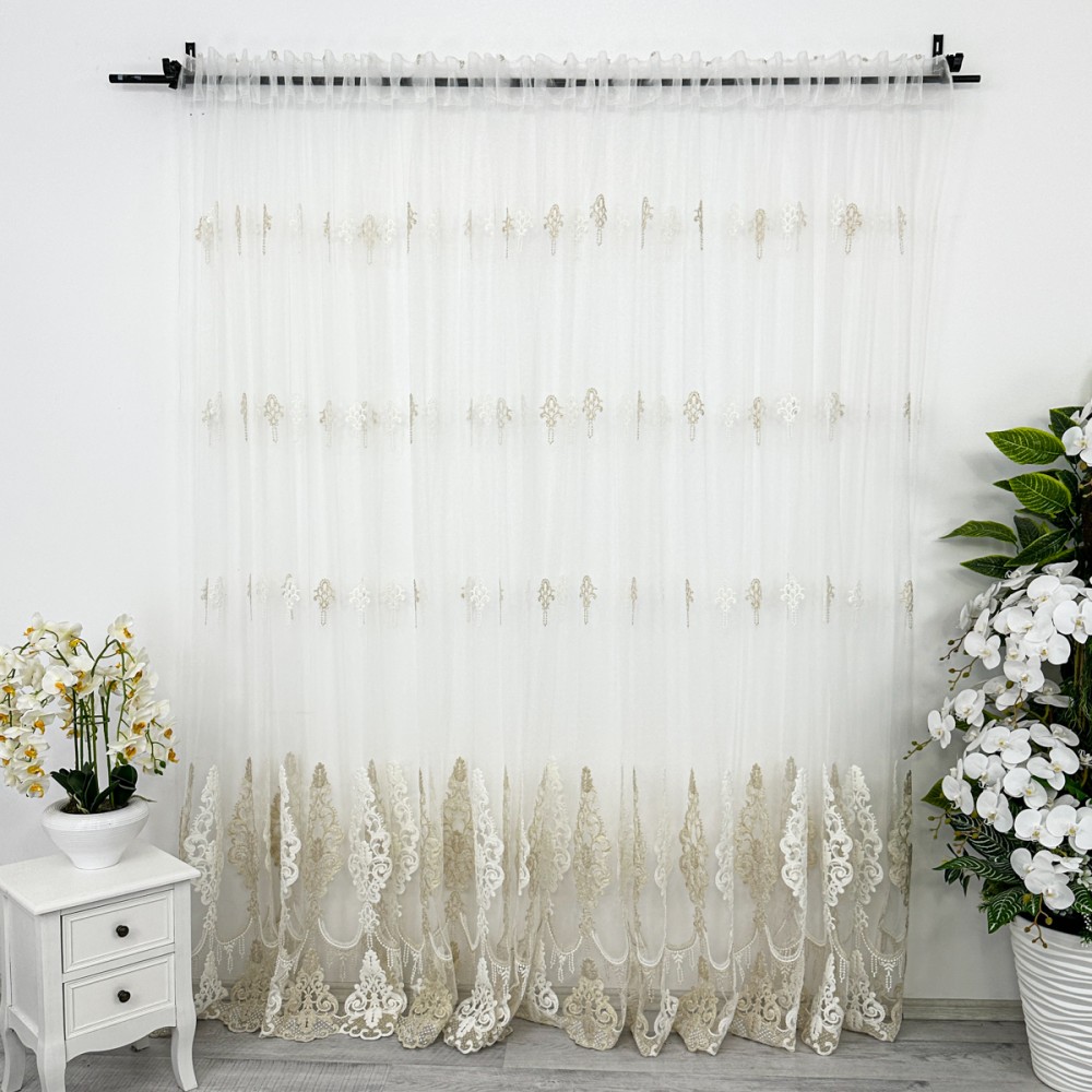 Perdea Emerald din Tulle cu Broderie, model elegant, Alb - Bej, latime 5m x inaltime 232cm, cu rejansa pt bara , CumparaMisim, cod produs: BPDs23c