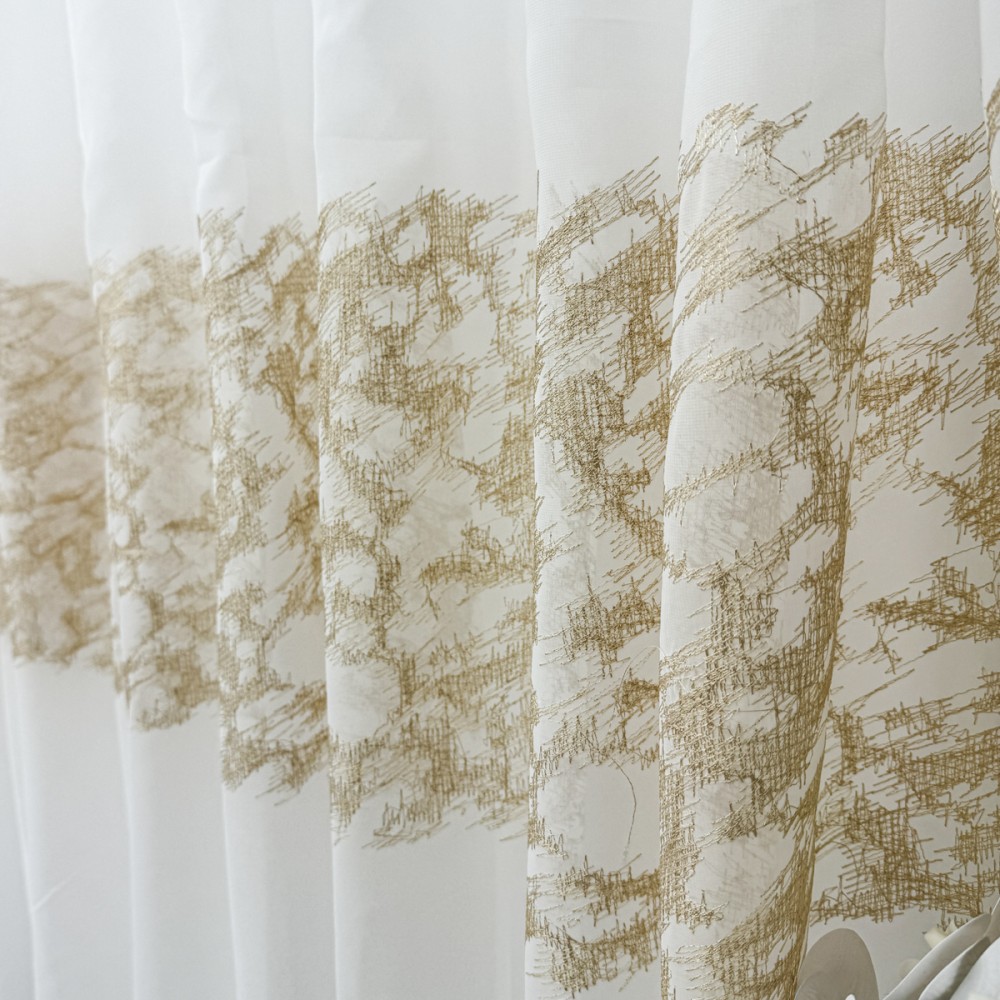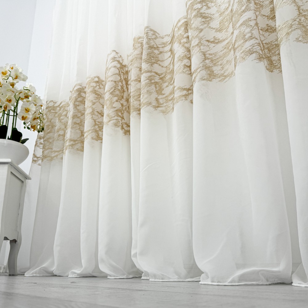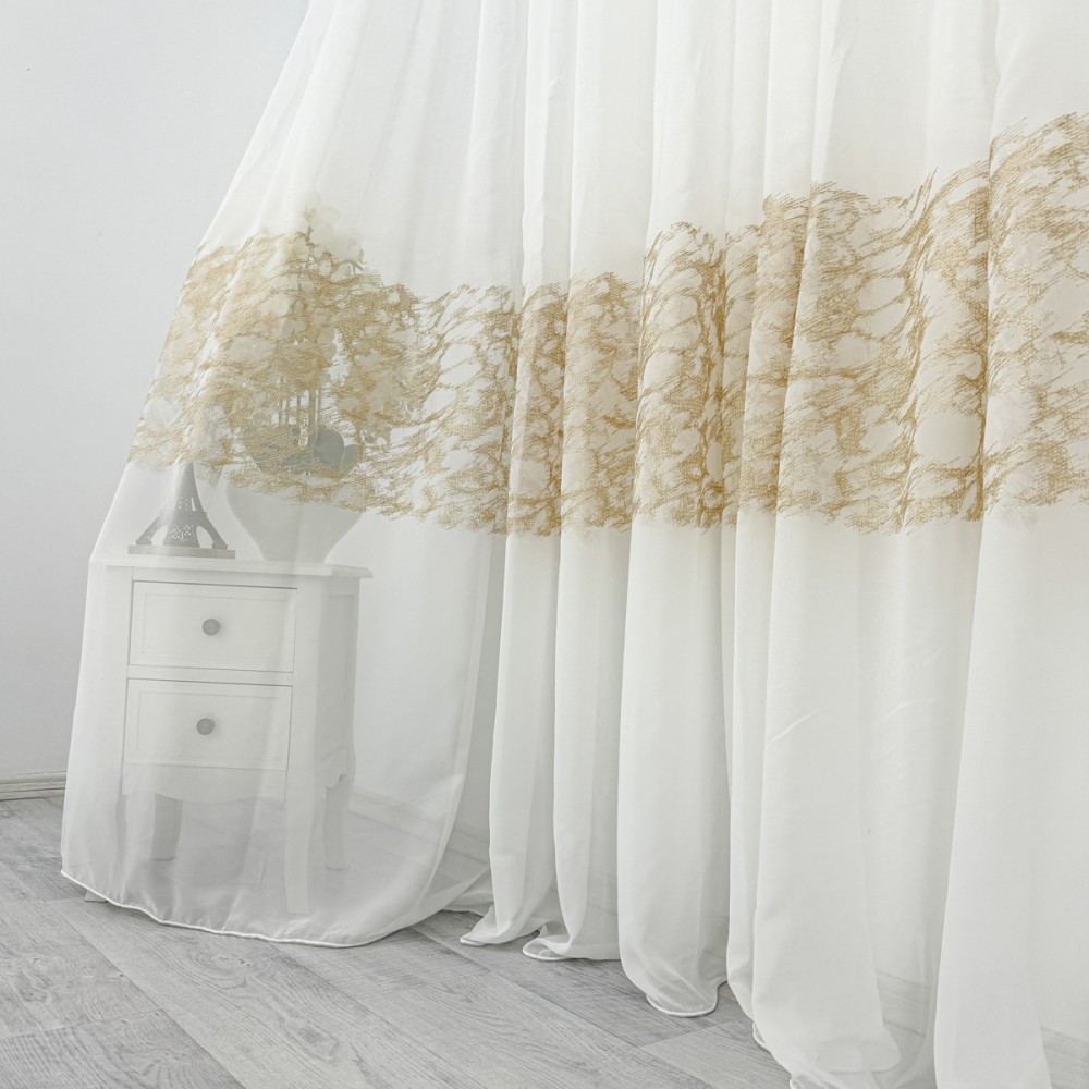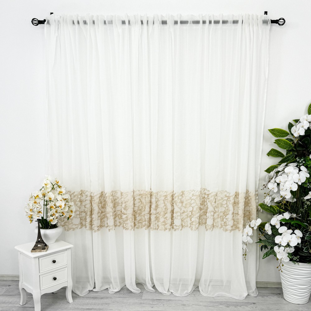 Perdea Evelyn din Voal Brodat, 500 x 232cm, rejansa pentru bara , model cu frunze, Ivoire - Maro, CumparaMisim, cod produs: BPDs70A