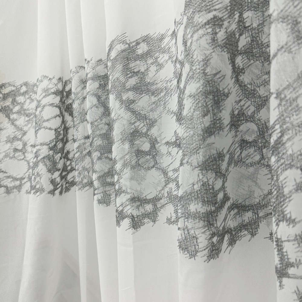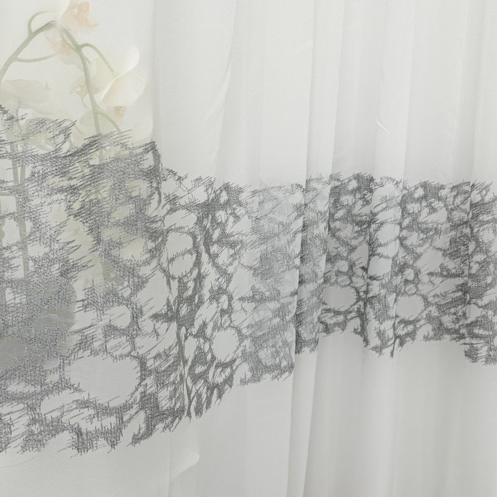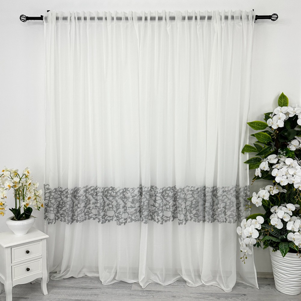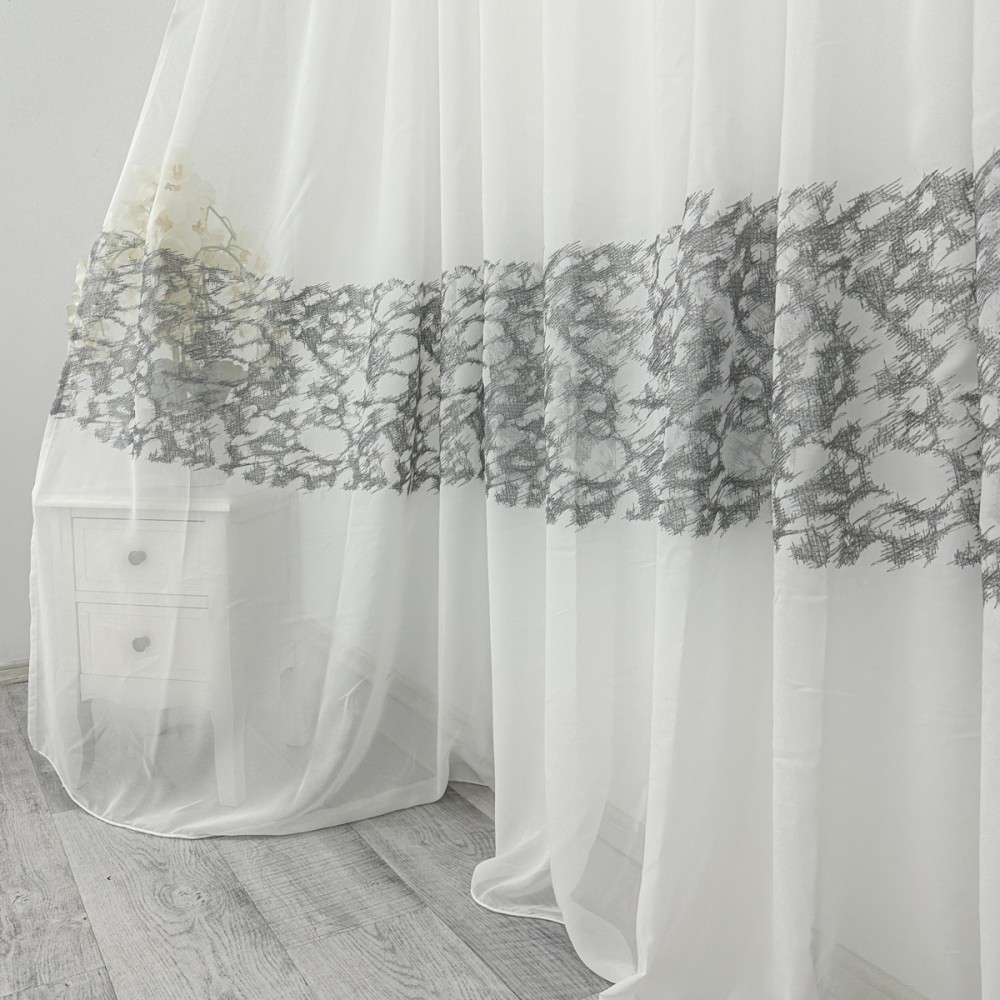 Perdea Evelyn din Voal Brodat - 100cm latime x 240cm inaltime ,Tiv lat , model cu frunze, Ivoire - Gri, CumparaMisim, cod produs: BPDs50A