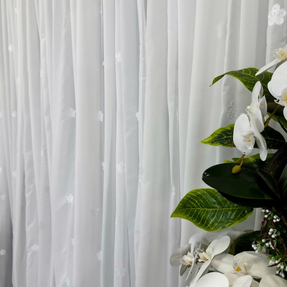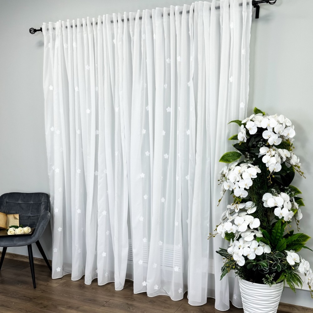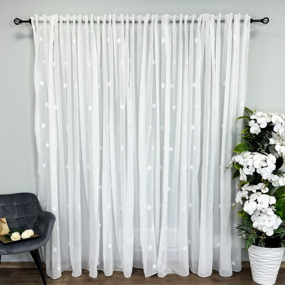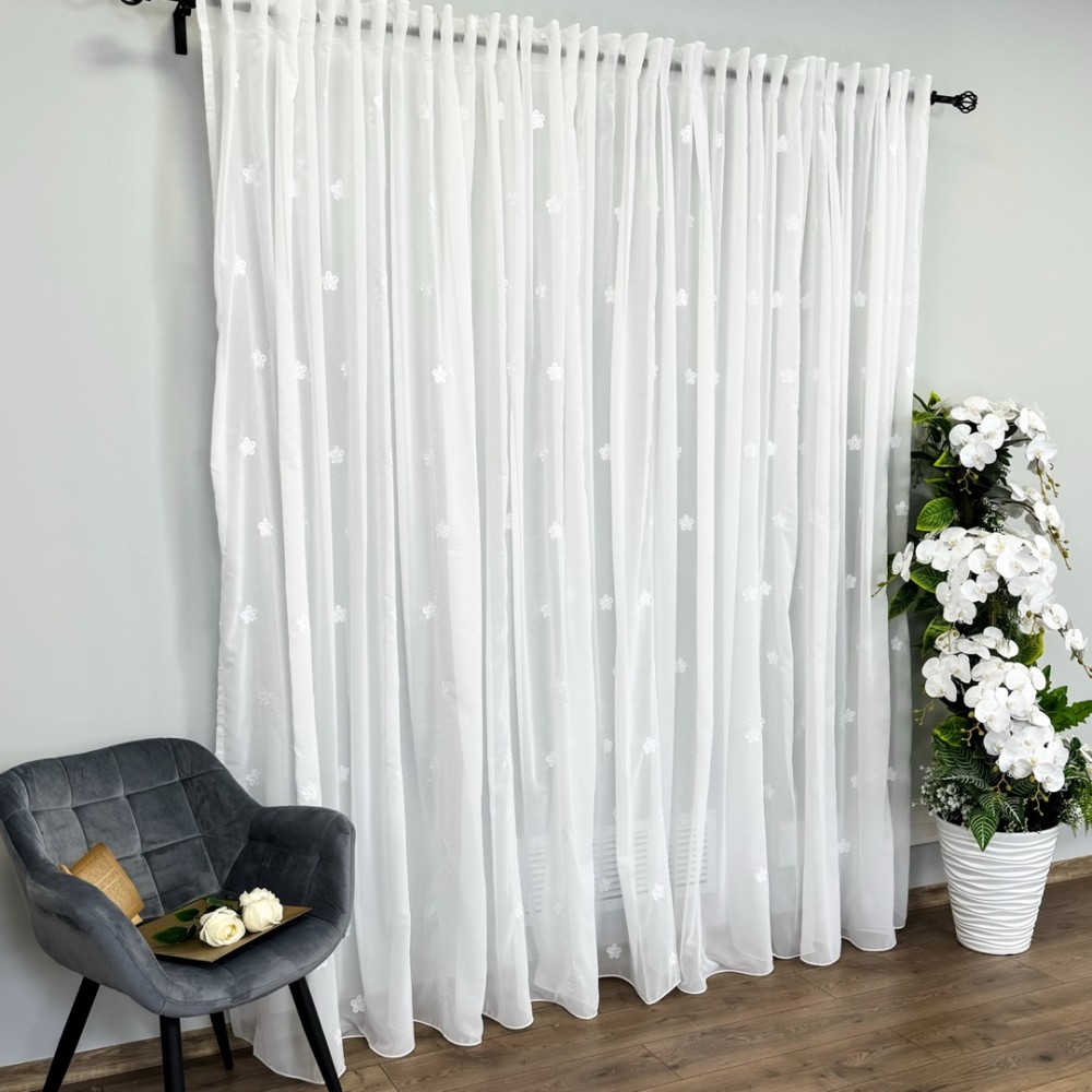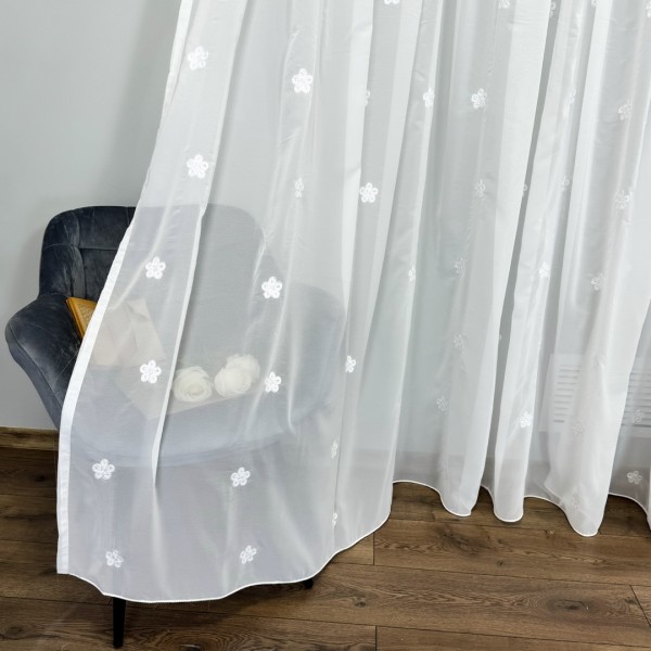 Perdea Floris din Voal Brodat - 600cm x 245cm, Rejansa pt. bara , Alb, CumparaMisim, cod produs: BPDs302A