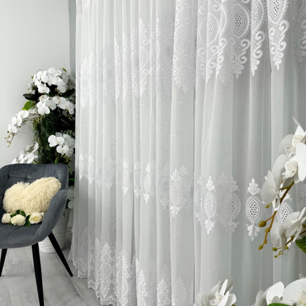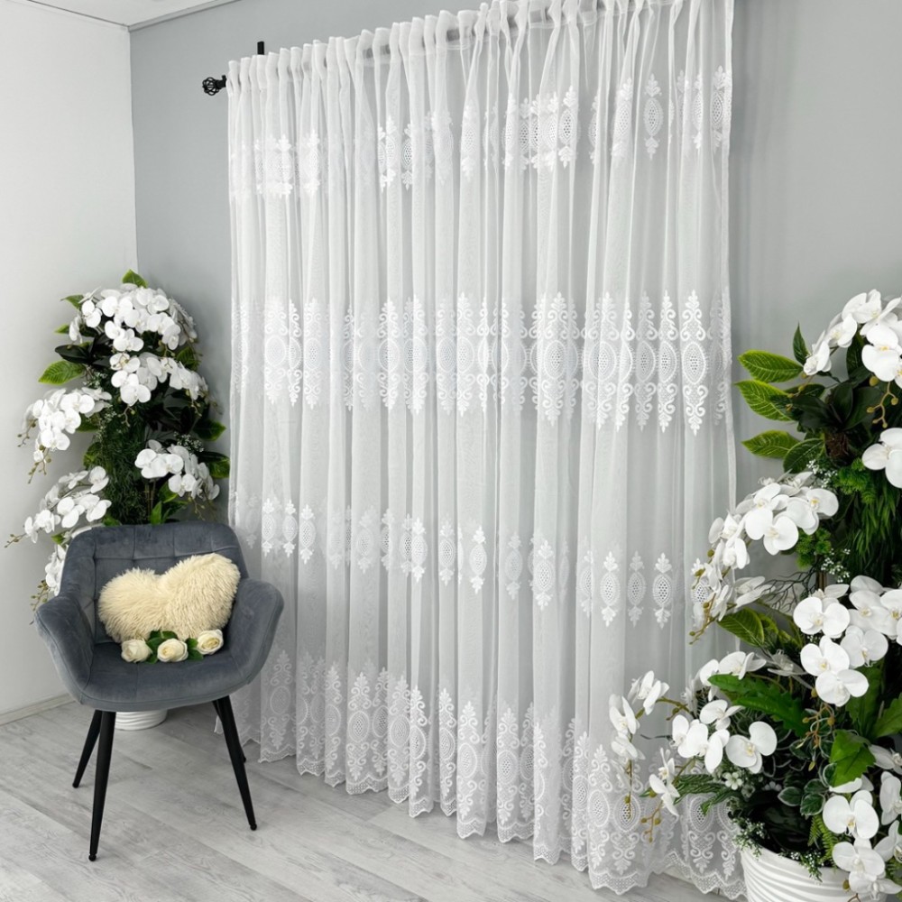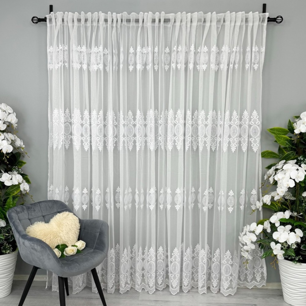 Perdea Inna din IN Brodat, Alb, 5m lungime x 1.9m inaltime, cu rejansa pt bara, CumparaMisim, cod produs: CSR-PDs44a