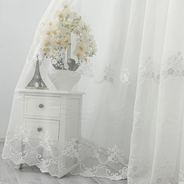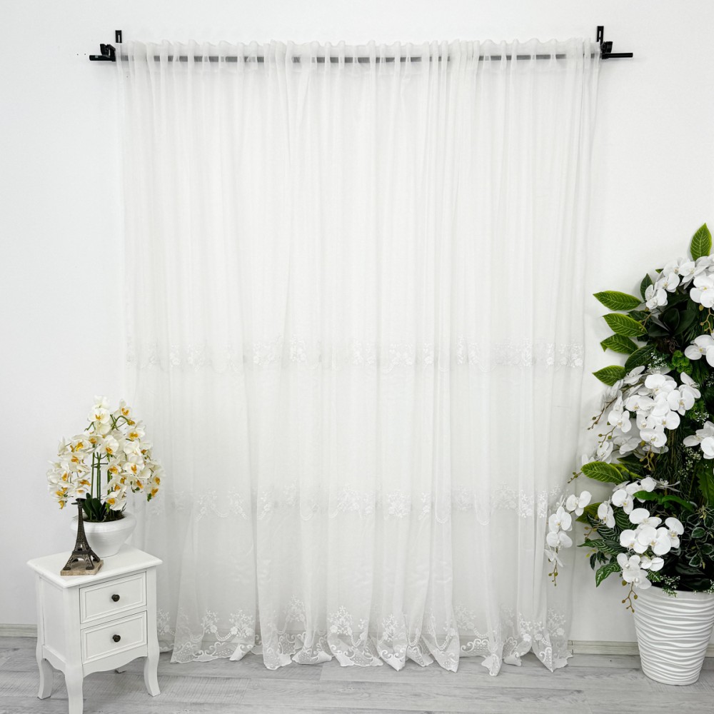 Perdea Leea din Tulle cu Broderie, Alb, 5m latime x 232cm inaltime x rejansa pt bara, CumparaMisim, cod produs: BPDs67a