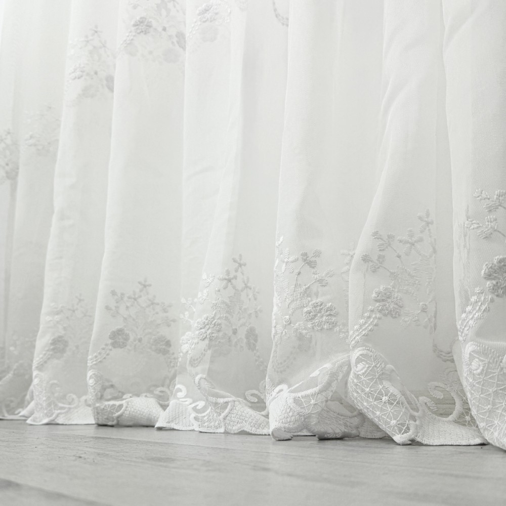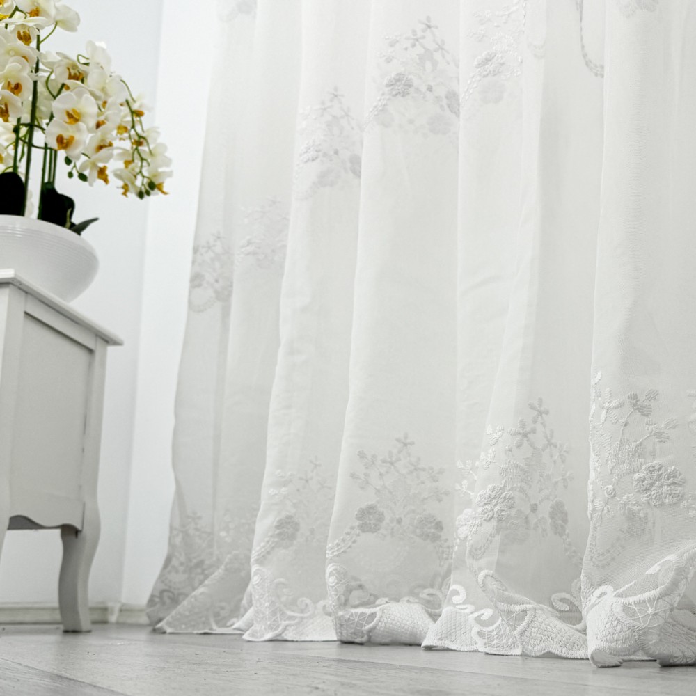 Perdelele din tulle brodat, se integrează cu ușurință în diferite stiluri de design interior, de la clasic la modern. Ele adaugă o notă de subtilitate și eleganță, accentuând frumusețea ferestrelor și creând un fundal rafinat pentru orice decor.