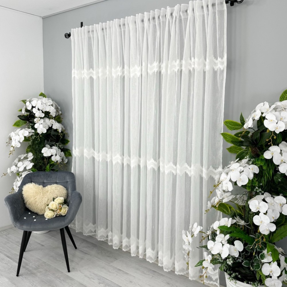 Inul este un material nobil, cunoscut pentru strălucirea și finisajul său elegant si aerat. Perdelele noastre din brodat, adaugă un aer luxos și sofisticat oricărei încăperi, îmbogățind instantaneu atmosfera spațiului. Fie că este vorba despre o cameră de zi, un dormitor sau chiar un spațiu de lucru, aceste perdele simple aduc o notă subtilă de eleganță și rafinament.