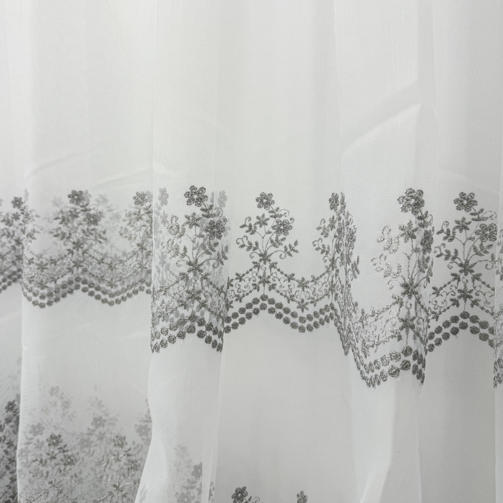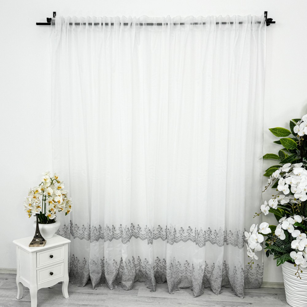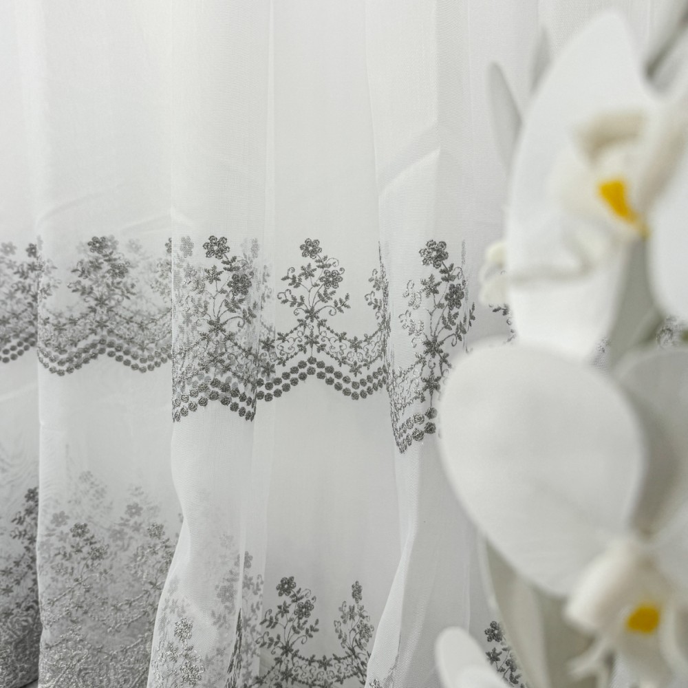 Perdea Melisa din Tulle cu Broderie - 140m latime x 200cm inaltime ,Tiv lat , Alb - Gri, CumparaMisim, cod produs: BPDs79b