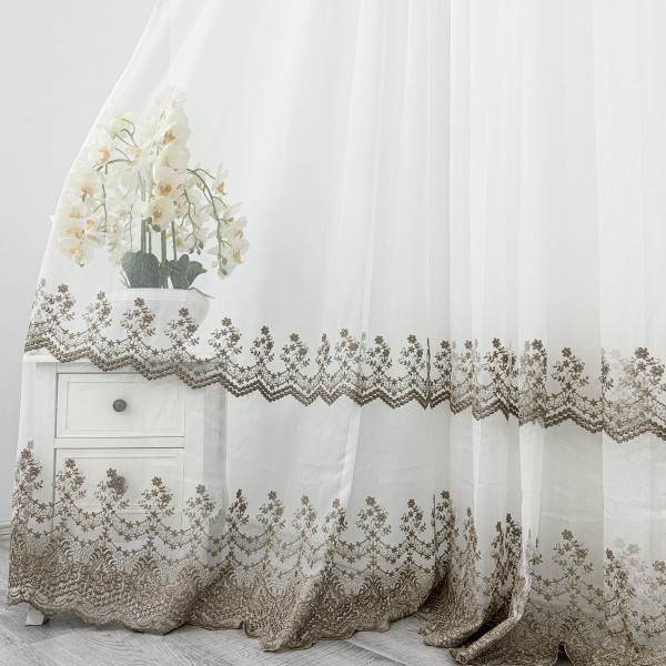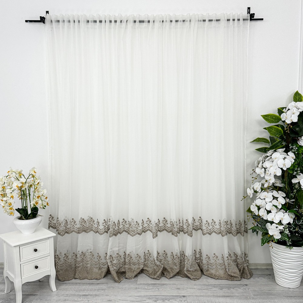 Perdea Melisa din Tulle cu Broderie, Alb - Bej nisipiu, 5m latine x 232cm inaltime, cu rejansa pentru bara, CumparaMisim, cod produs: BPDs22a
