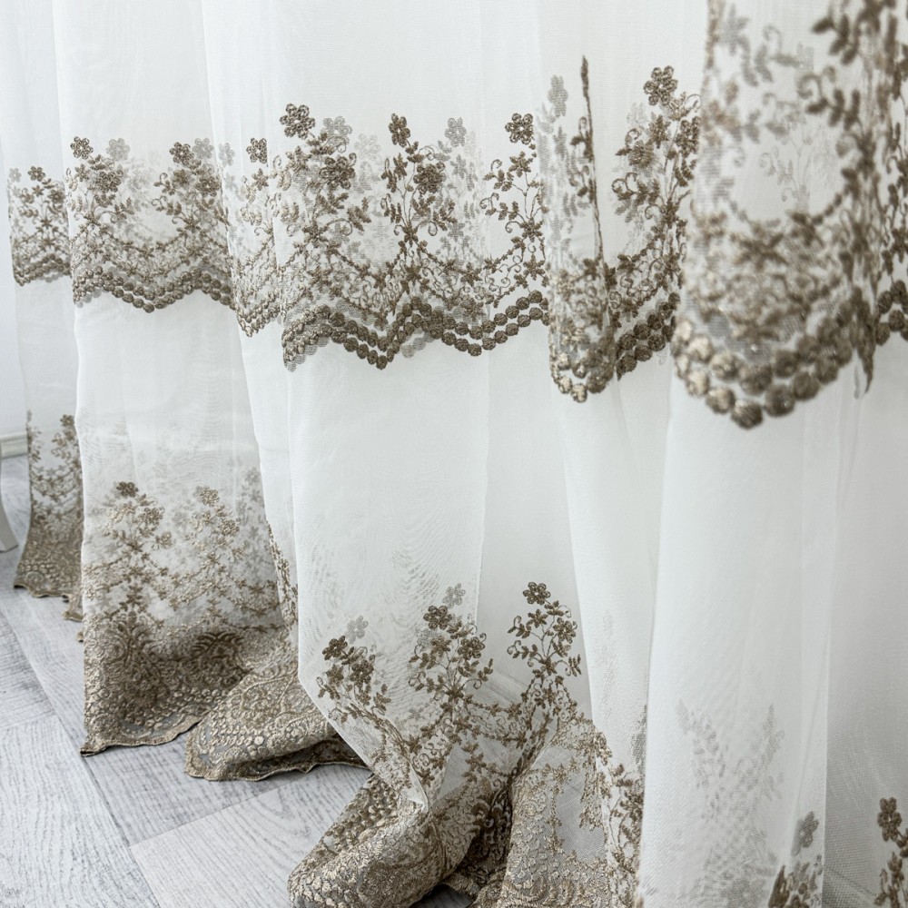 Perdelele din tulle brodat, se integrează cu ușurință în diferite stiluri de design interior, de la clasic la modern. Ele adaugă o notă de subtilitate și eleganță, accentuând frumusețea ferestrelor și creând un fundal rafinat pentru orice decor.