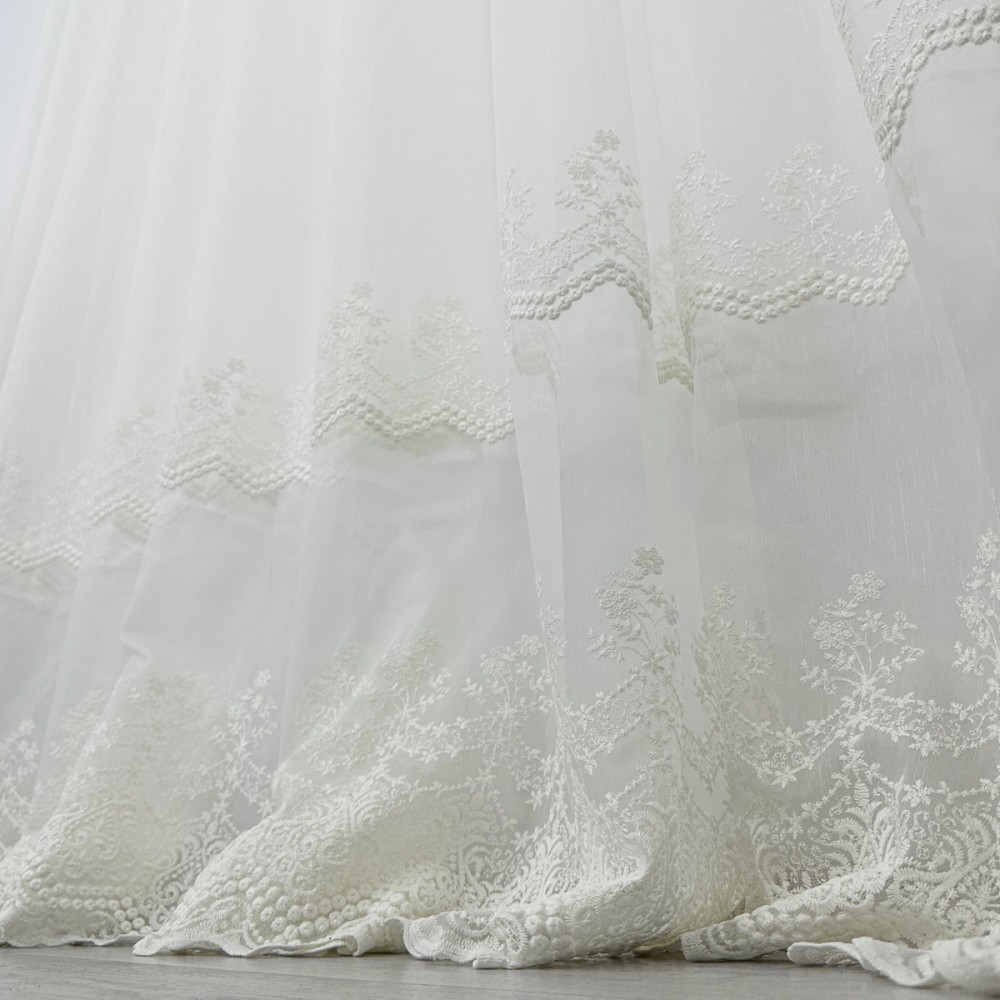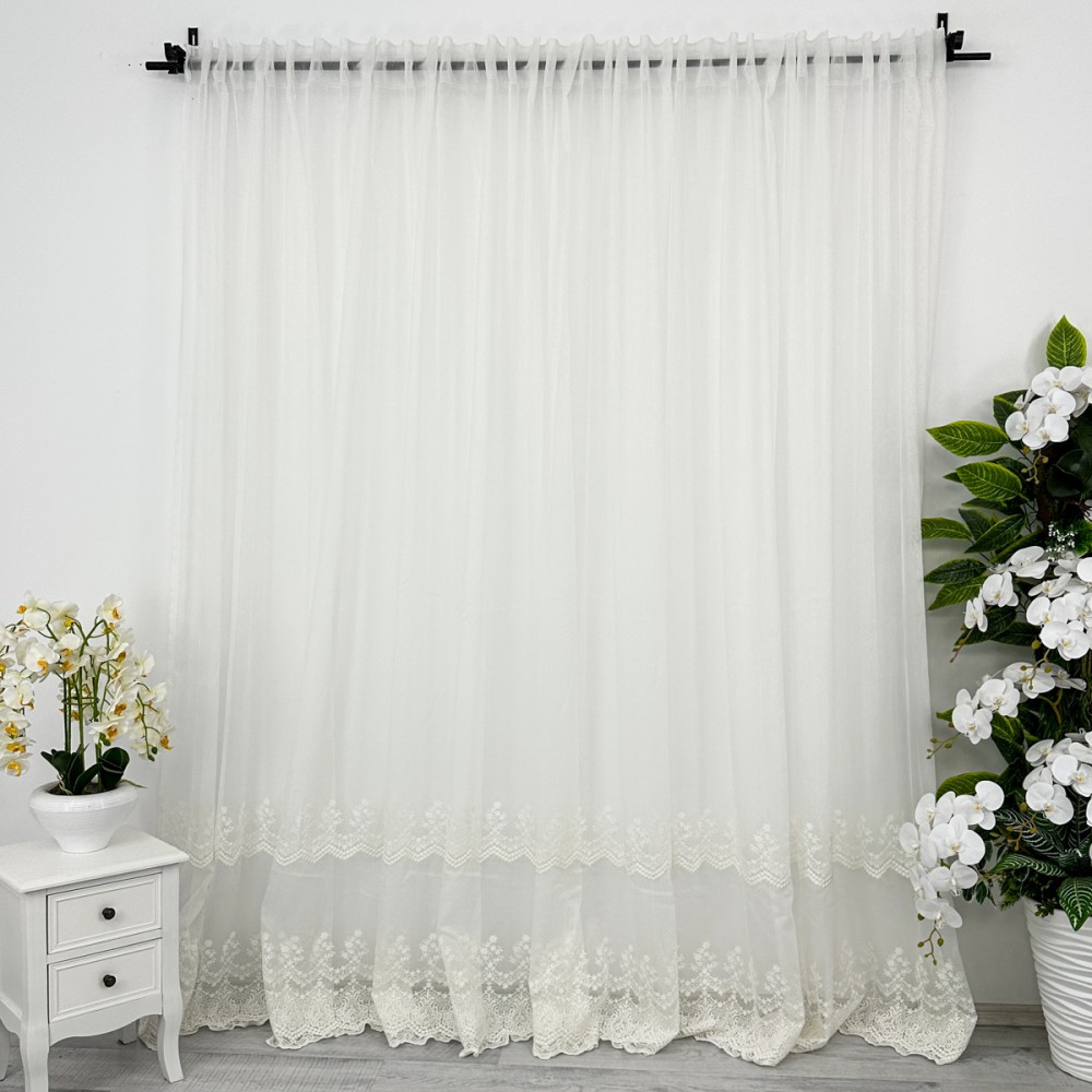 Perdea Melisa din Tulle cu Broderie - Ivoire, 5m latime x 232cm inaltime x rejansa pentru bara, CumparaMisim, cod produs: BPDs45a