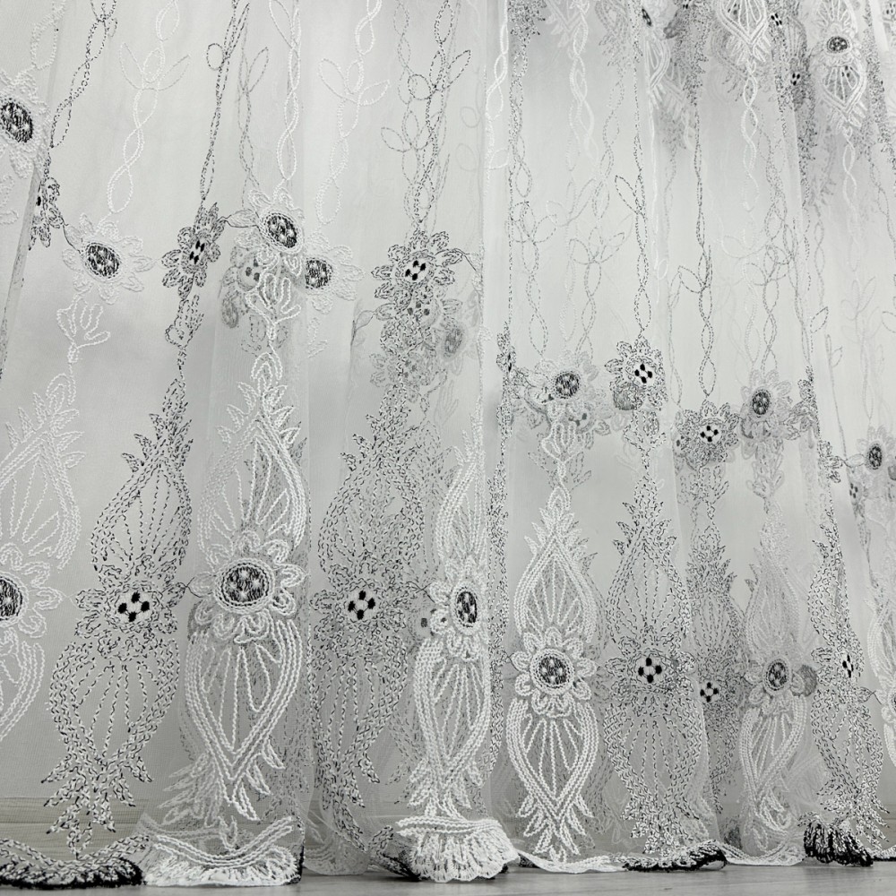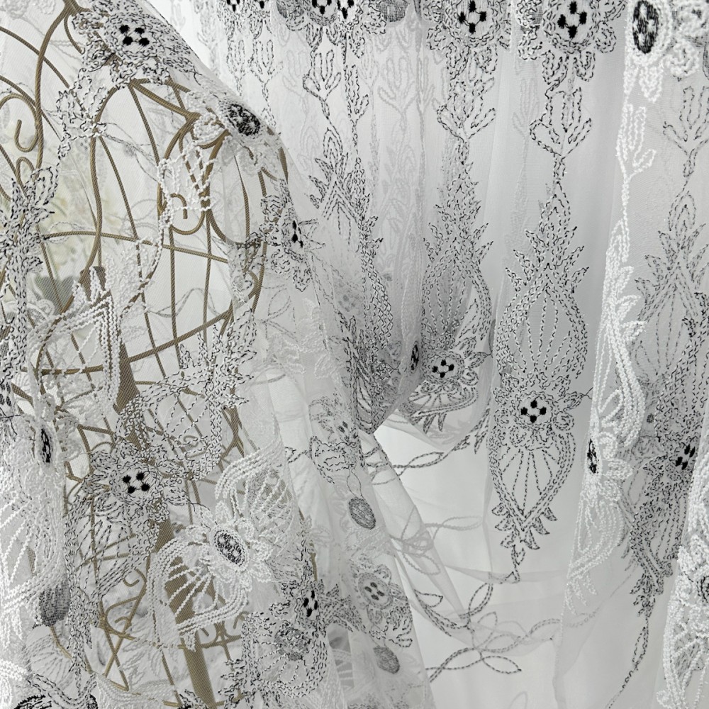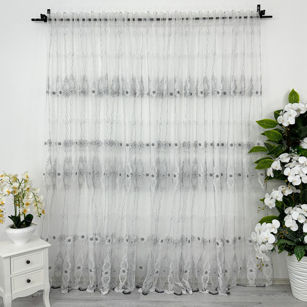 Perdea Merry din Tulle cu Broderie , model elegant, Alb - Negru- 200x270 cm , rejansa pt. bara , CumparaMisim, cod produs: BPDs35A