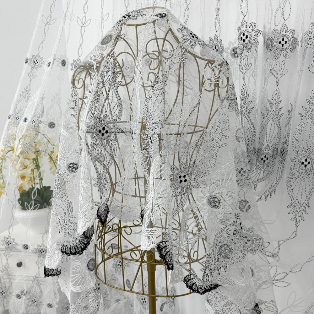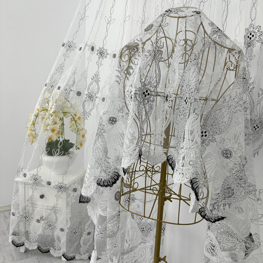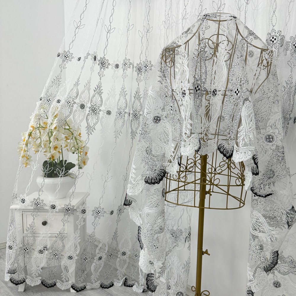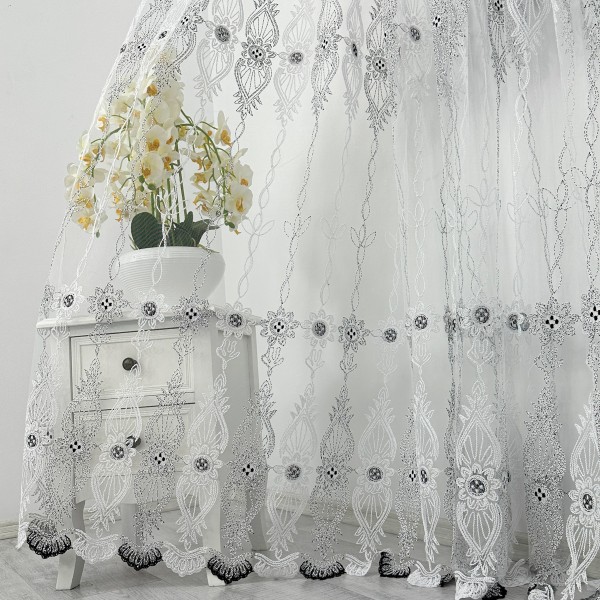 Perdea Merry din Tulle cu Broderie , model elegant, Alb - Negru- 200x270 cm , rejansa pt. bara , CumparaMisim, cod produs: BPDs35A