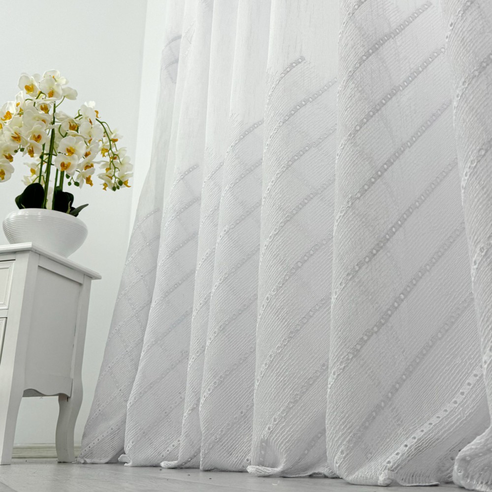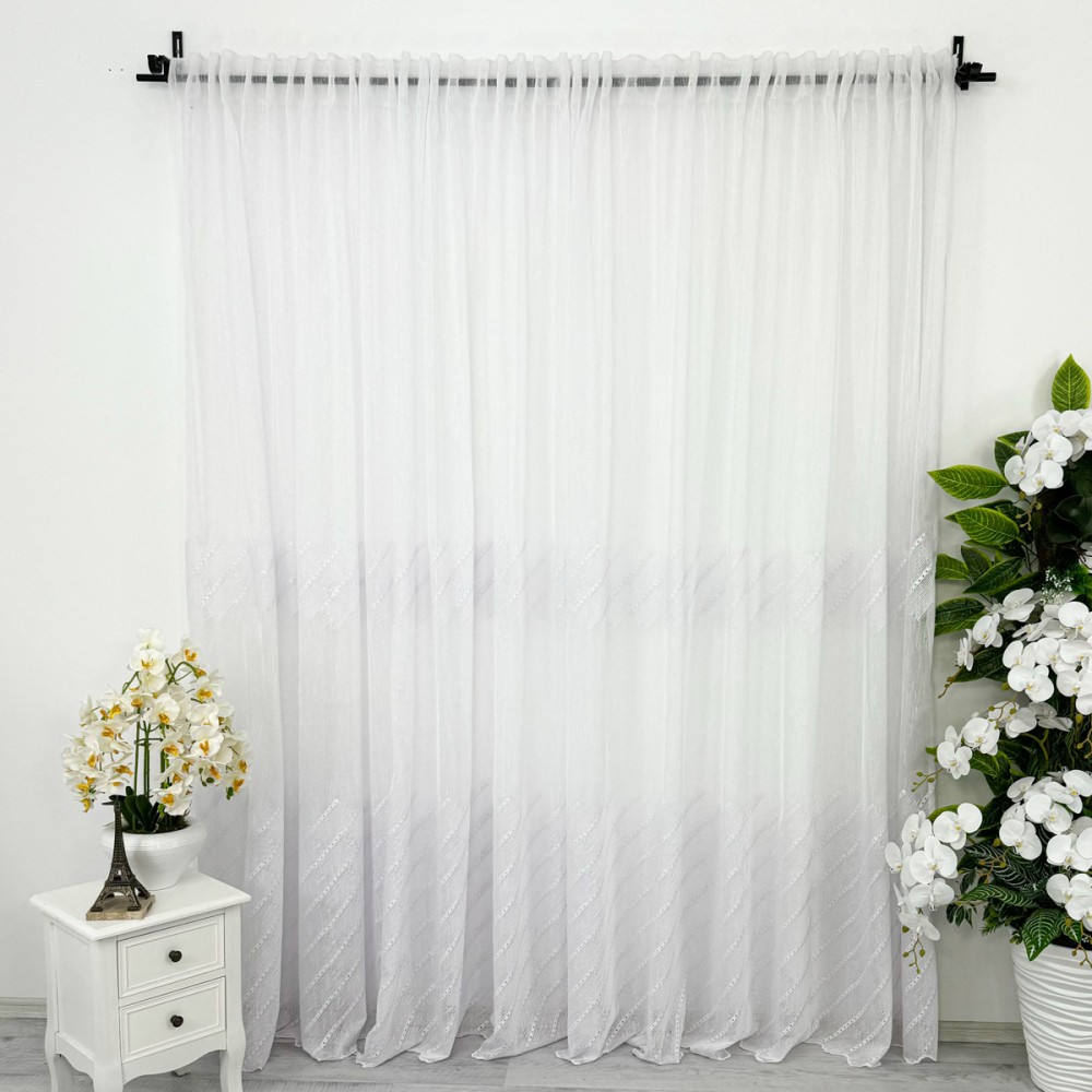 Inul este un material nobil, cunoscut pentru strălucirea și finisajul său elegant si aerat. Perdelele noastre din brodat, adaugă un aer luxos și sofisticat oricărei încăperi, îmbogățind instantaneu atmosfera spațiului. Fie că este vorba despre o cameră de zi, un dormitor sau chiar un spațiu de lucru, aceste perdele simple aduc o notă subtilă de eleganță și rafinament.