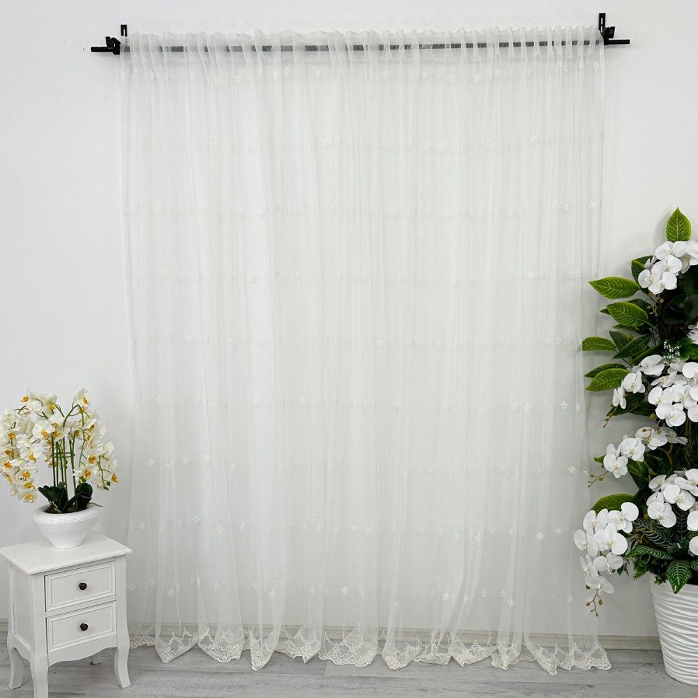 Tulle-ul este un material elegant, cunoscut pentru strălucirea și finisajul său aerat. Perdelele noastre din tulle cu broderie, adaugă un aer luxos și sofisticat oricărei încăperi, îmbogățind instantaneu atmosfera spațiului. Fie că este vorba despre o cameră de zi, un dormitor sau chiar un spațiu de lucru, aceste perdele simple aduc o notă subtilă de eleganță și rafinament.