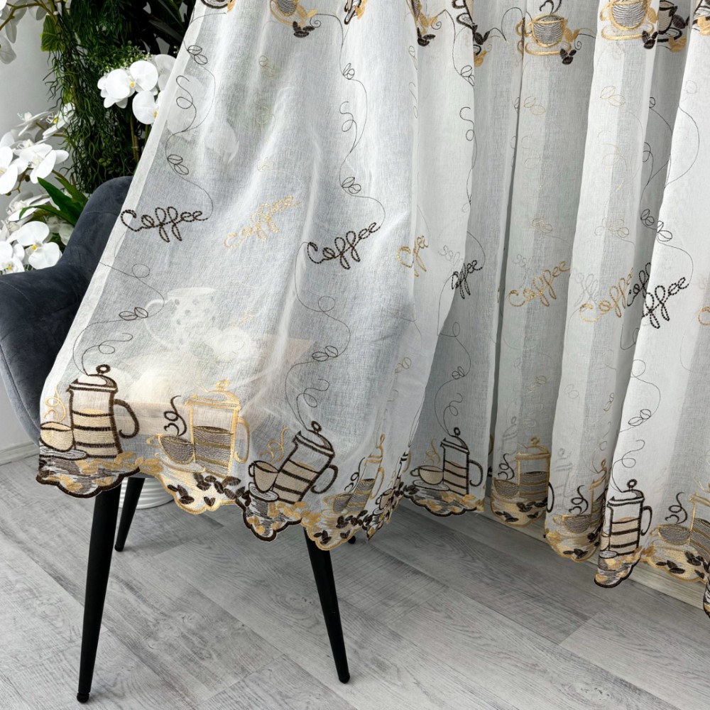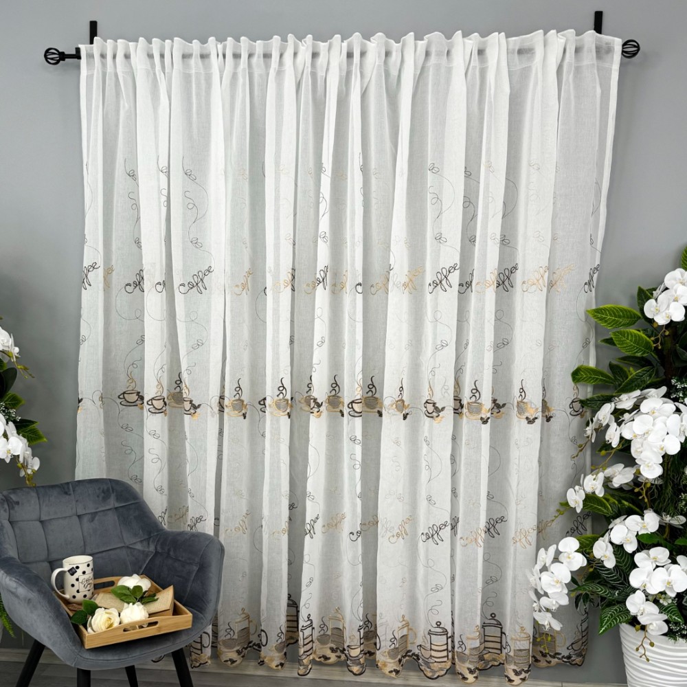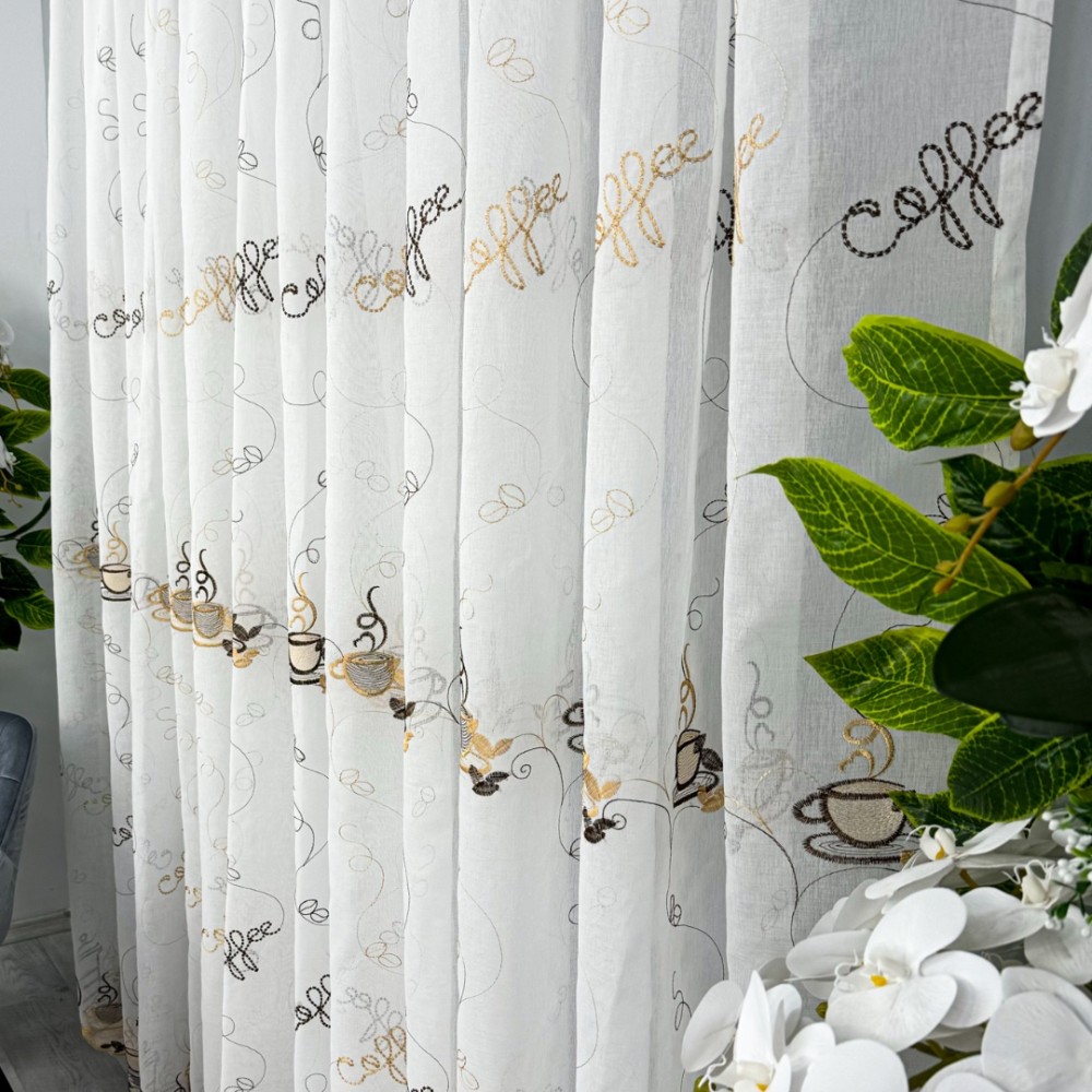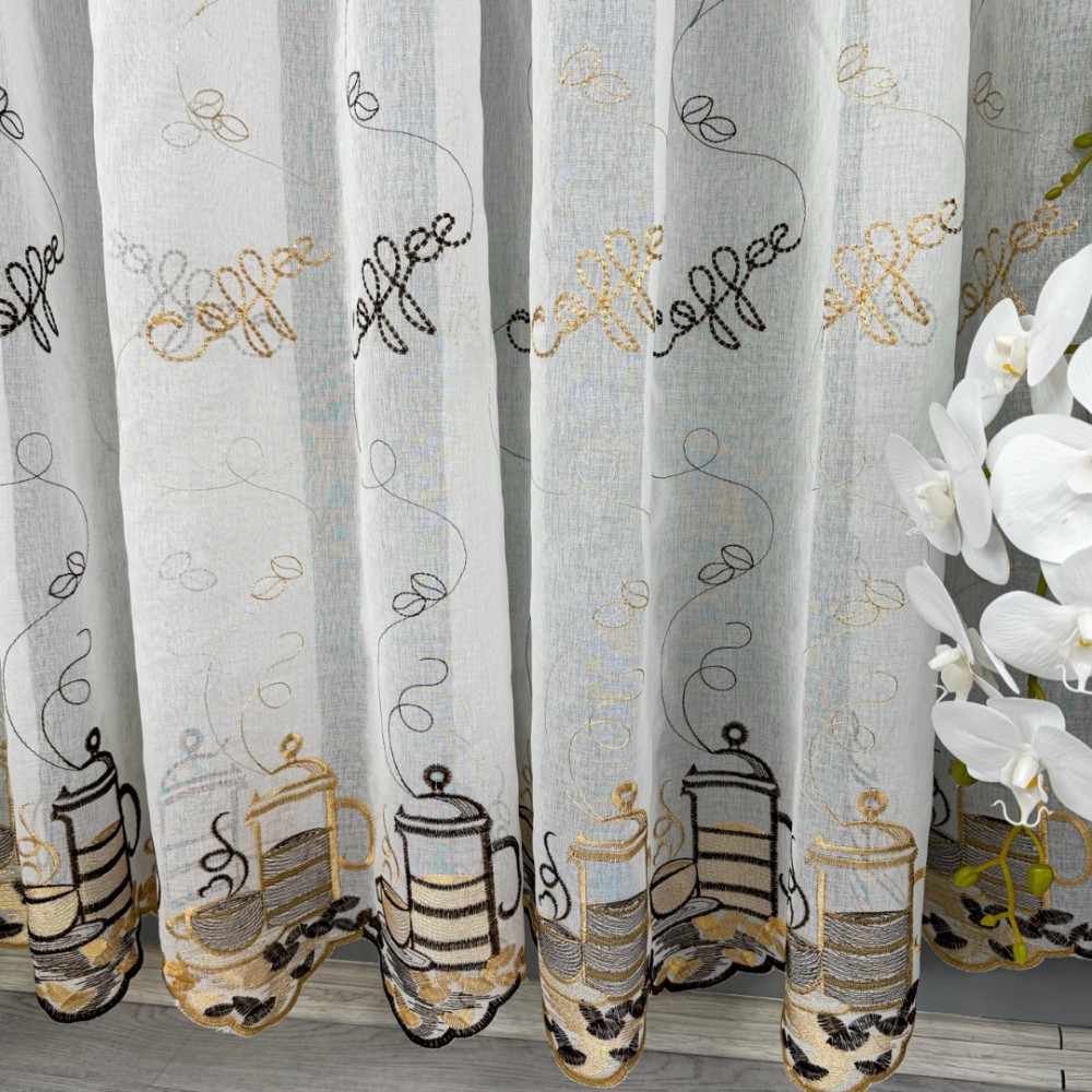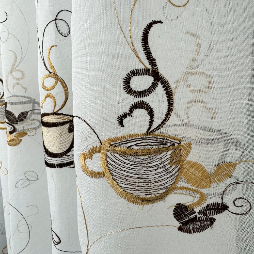 Perdea pentru Bucatarie din IN brodat ,Alb cu Cafea V1- 500cm x 220cm, Rejnasa pt. bara , CumparaMisim, cod produs: BPDs202A