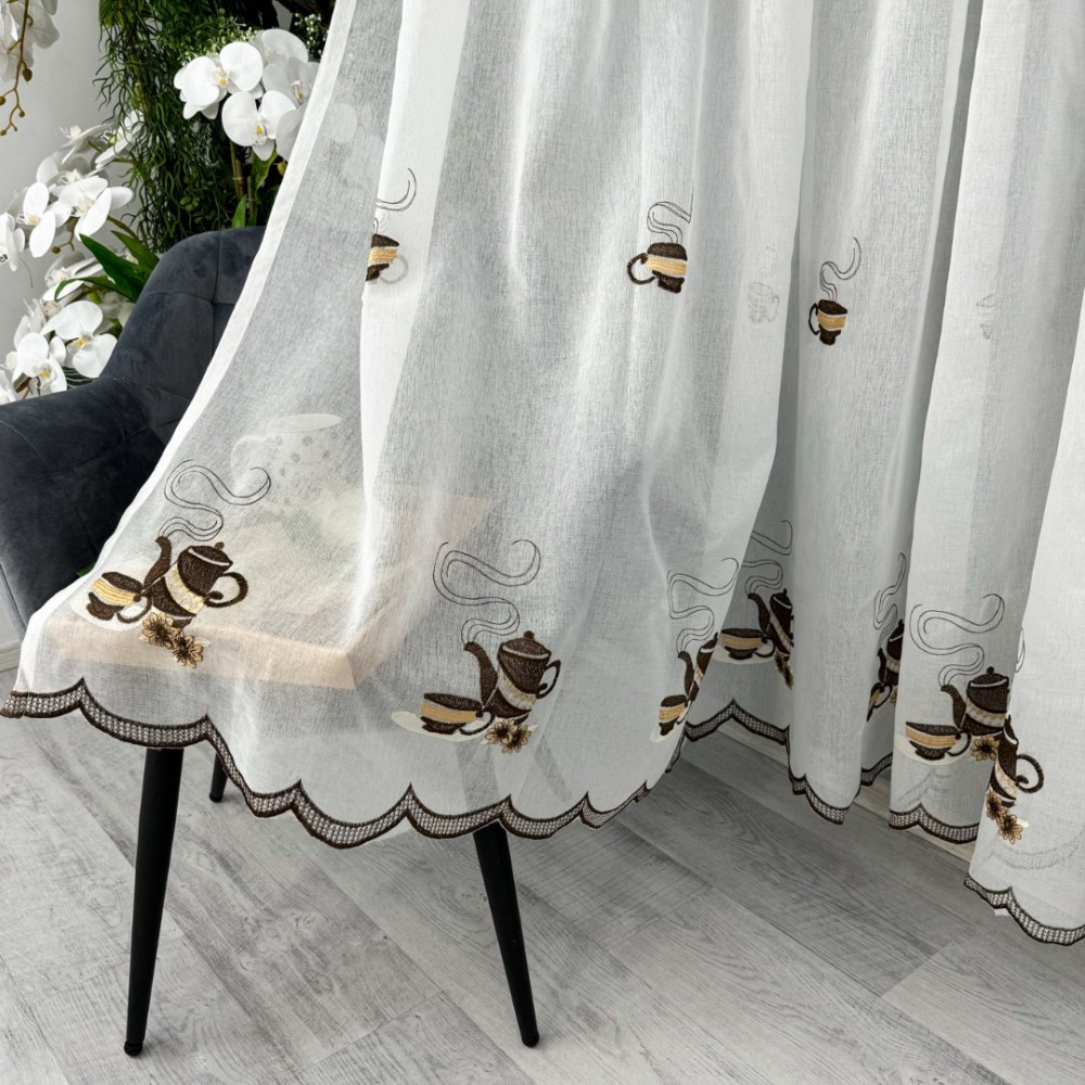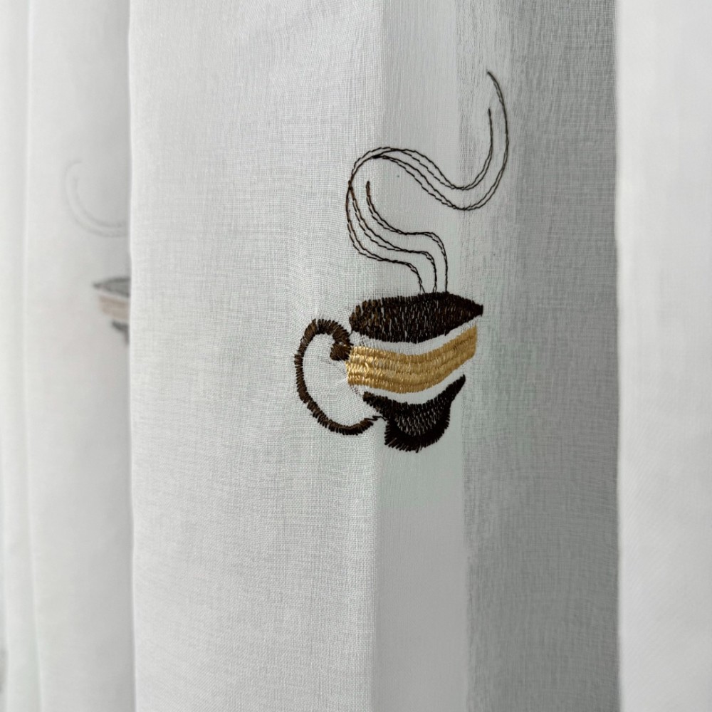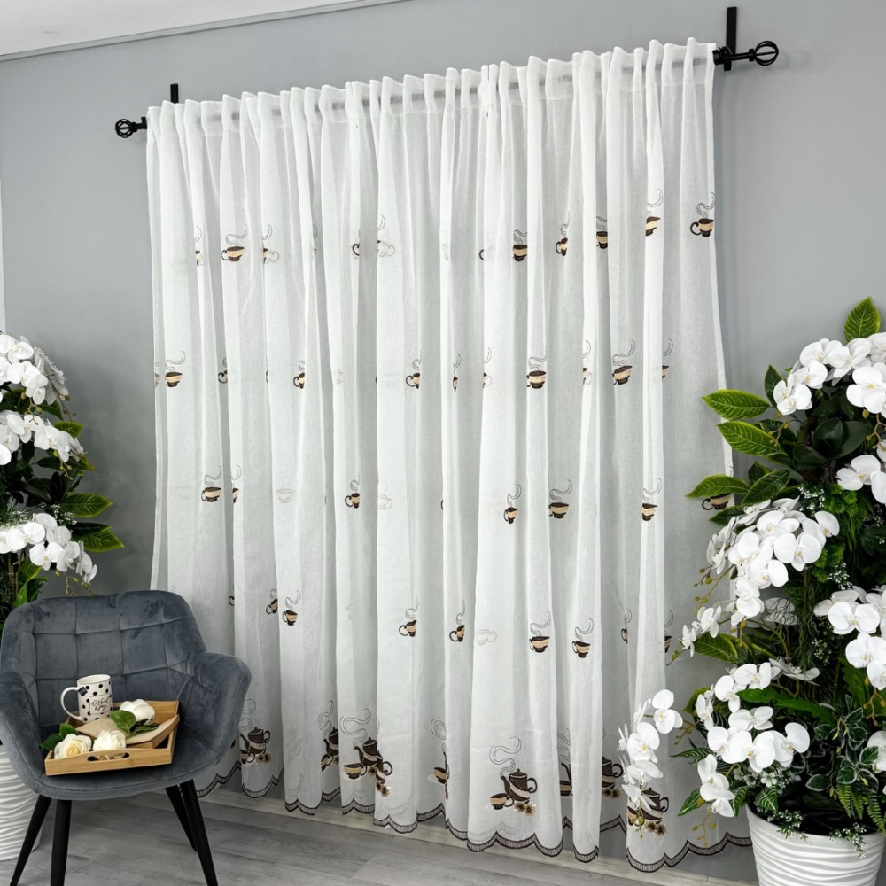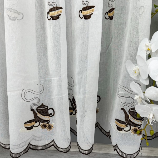 Perdea pentru Bucatarie din IN brodat, Alb cu Cafea V3, 200cm latime x 200cm inaltime, cu rejansa pentru bara, CumparaMisim, cod produs: BPDs204a
