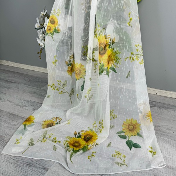 Perdea pentru Bucatarie din IN imprimat -140cm x 190m , rejansa pt.bara, Alb cu florea soarelui, CumparaMisim, cod produs: CSR-PDs64A